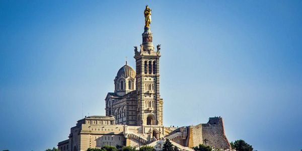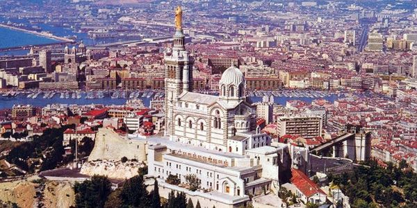 Een prachtig panorama geeft je een beeld van de gigantische omvang van Marseille, en toont je de vlakbij liggende eilandjes, en de fantastische glinsterende zee.