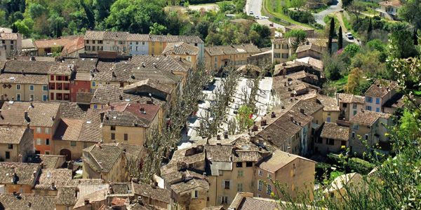 Het dorpsplein ligt verscholen onder eeuwenoude platanen, die koelte en schaduw bieden tijdens de warme zomermaanden. Op dit centrale plein vindt elke dinsdag de wekelijkse markt plaats met de typische Provençaalse geuren en kleuren. Veel producten die je op de markt kunt kopen zijn biologisch.