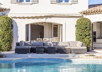 Luxe villa op loopafstand van het strand, met mooi zicht op de baai van St Tropez.