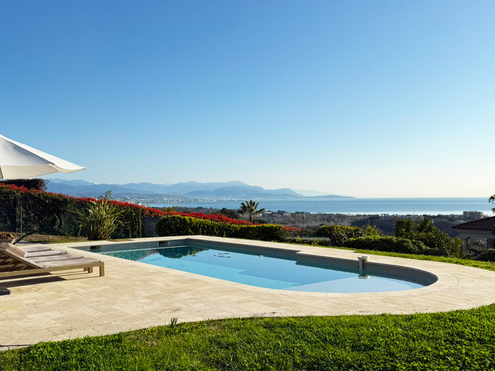 Luxe villa met privézwembad te Antibes. Panoramisch zeezicht. Moderne bouw. Mooi vlak terrein.