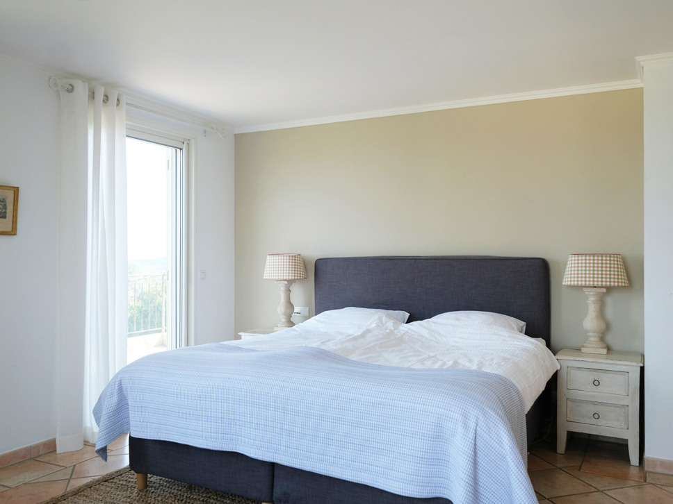 Vanuit de living bereikt u het terras, waar u wordt getrakteerd op een prachtig uitzicht over de tuin, het zwembad en de kust richting Nice, een van de bekendste steden van Zuid-Frankrijk. Uiteraard is in de gehele villa wifi beschikbaar.De villa beschikt over 4 slaapkamers en 3 badkamers.