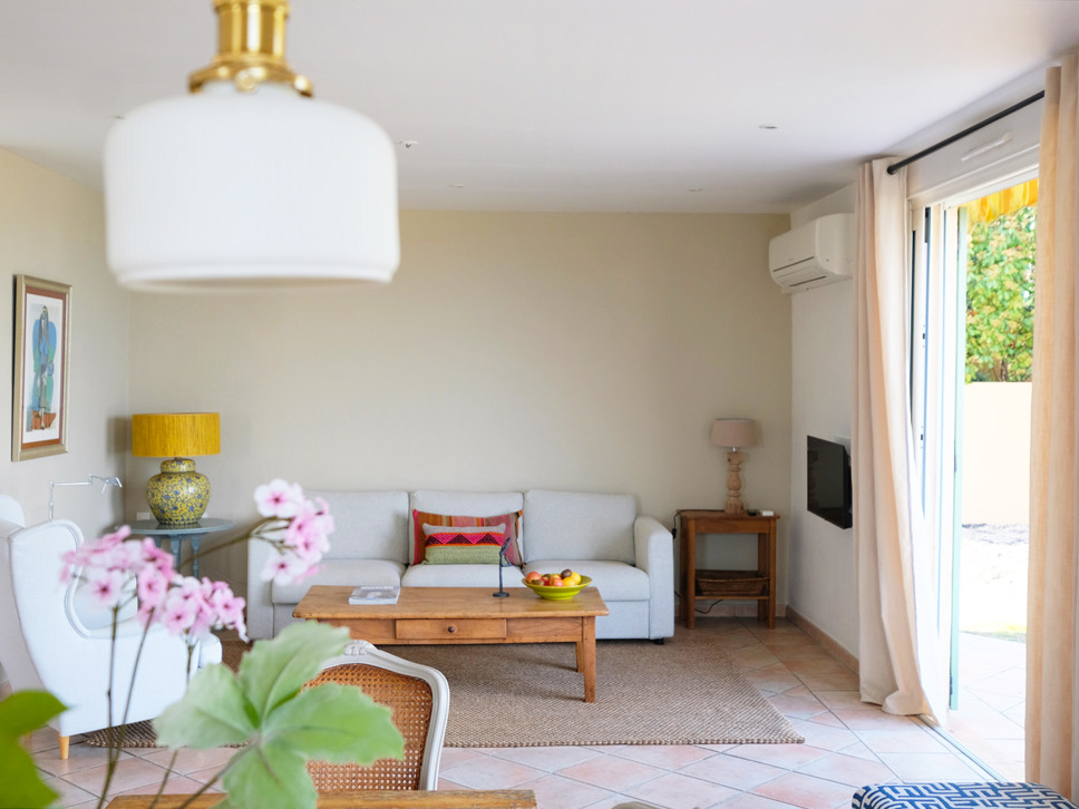 Deze luxe en sfeervol ingerichte villa beschikt over een royale, open leefruimte met grote schuifpuien die naadloos overgaan in het terras. Dankzij de royale glaspartijen geniet u optimaal van het weidse uitzicht. Het interieur is modern-klassiek, met een lichte en rustige uitstraling die direct een gevoel van comfort en elegantie oproept.