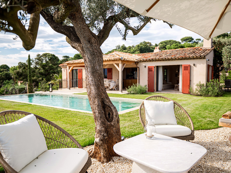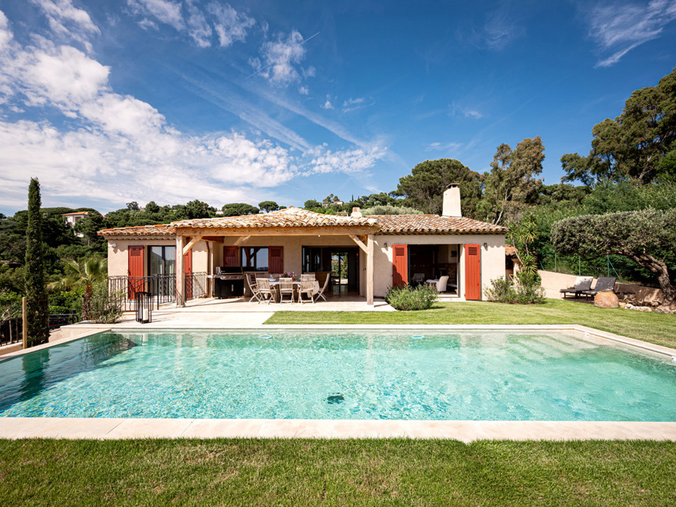 Luxe villa met privézwembad te La Croix Valmer aan de Côte d'Azur. Volledig airconditioned. Super zeezicht. De villa is geschikt voor 8 personen.