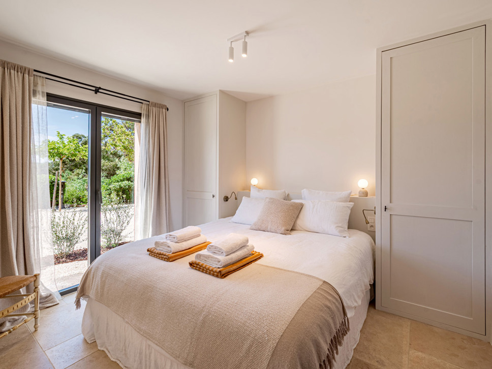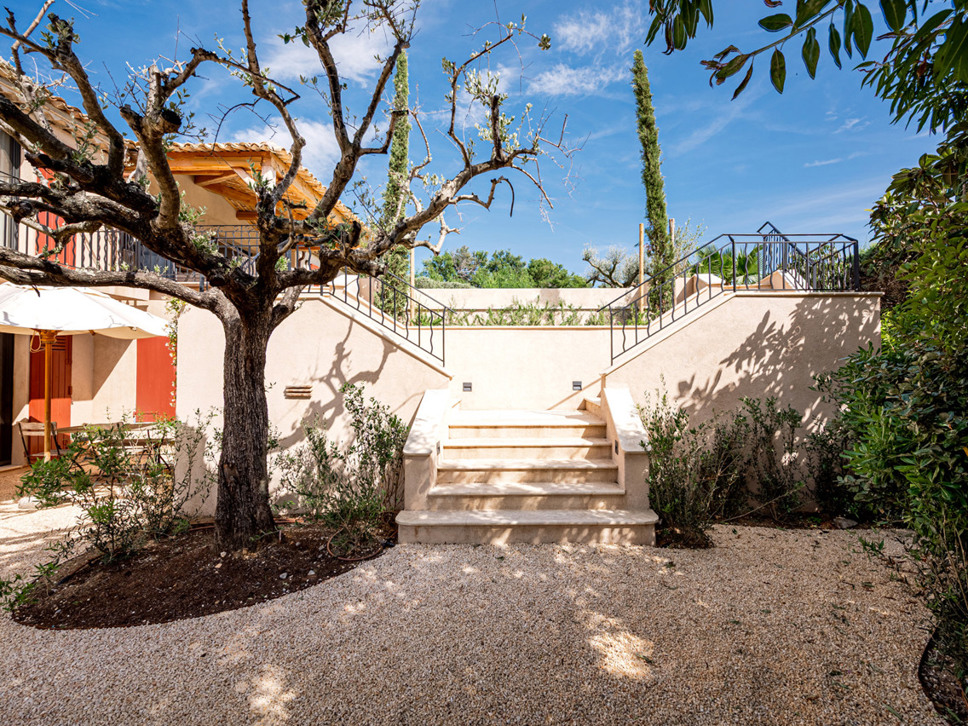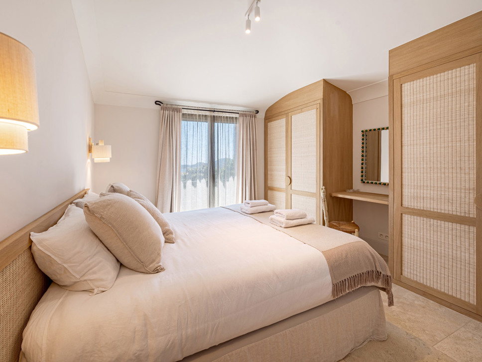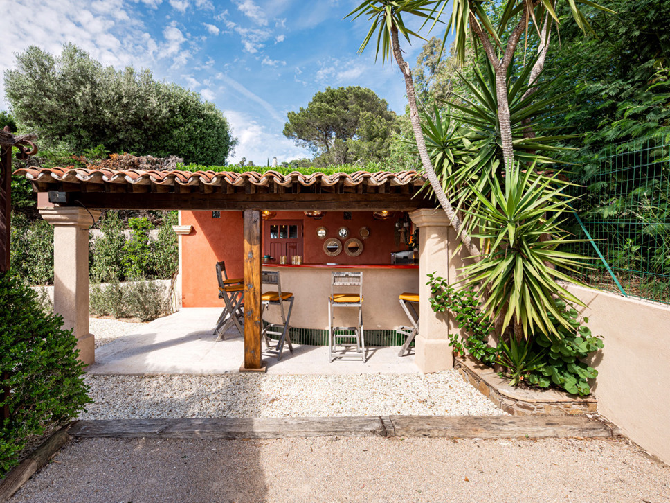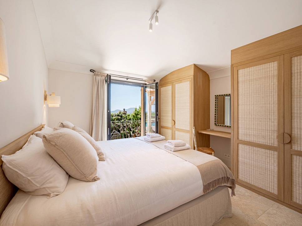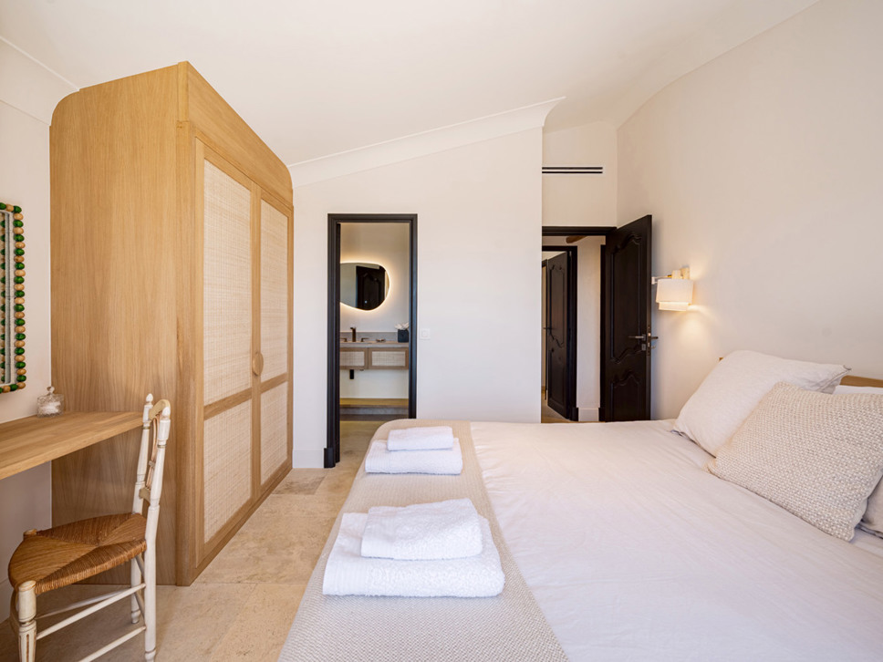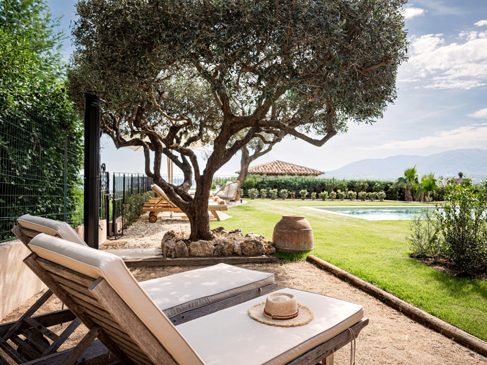 Op de bovenverdieping vindt u: Slaapkamer 3 is een 2e ouderslaapkamer met een tweepersoonsbed (180x200) en de en-suite badkamer is voorzien van een luxe inloopdouche, wastafel en W.C. Erg leuk vinden we het balkon vanwaar een prachtig zicht over de wijnvelden en de Middellandse Zee. Op slaapkamer 4 staat een tweepersoonsbed (180x200) en de badkamer is en-suite met wastafel en luxe inloopdouche.Deze villa beschikt over een goed onderhouden tuin voorzien van diverse terrassen - waarvan 1 overdekt - en luxe buitenmeubilair. Het uitzicht is op de Middellandse Zee. U geniet hier dan ook volop van het buitenleven aan de Côte d’Azur. De villa is volledig op het zuiden georiënteerd en geniet derhalve van een uistekende zonligging met 180 graden zeezicht en over de wijngaarden.