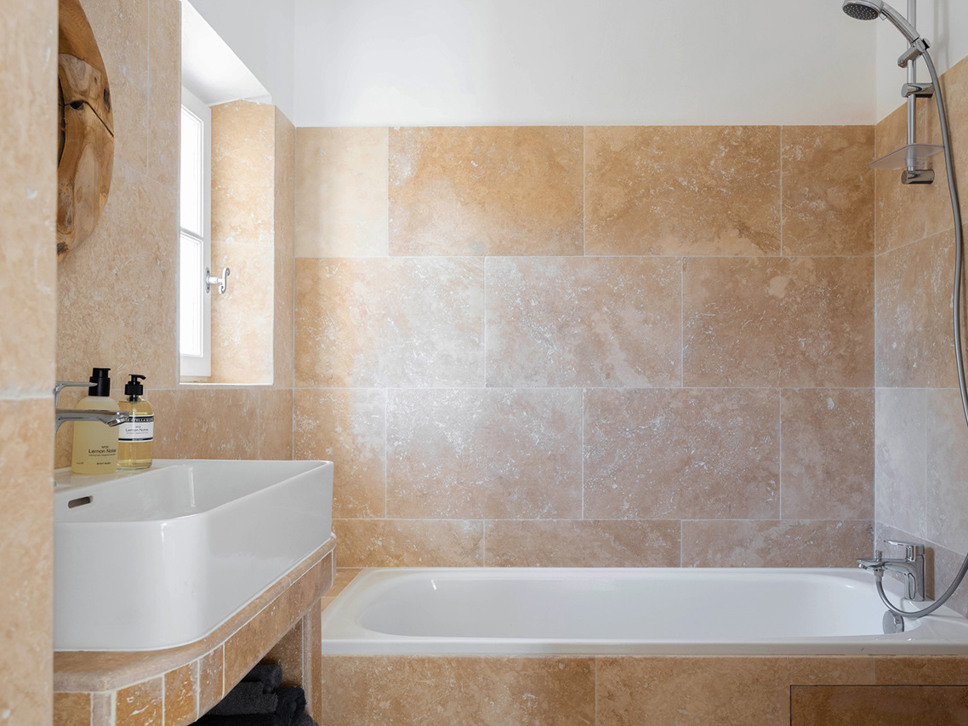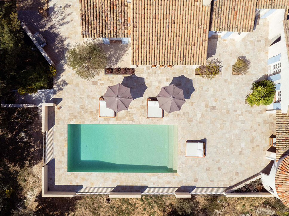Het zwembad ligt pal voor de villa en is omringd door een royaal natuurstenen zonneterras. De afmeting is 11,5 x 5 m en loopt af tot een diepte van 2.5 m. Luxe zonnebedden en parasols completeren het Zuid-Frankrijk gevoel. Een leuke plus is de aanwezigheid van een petanque baan en een tafeltennistafel.