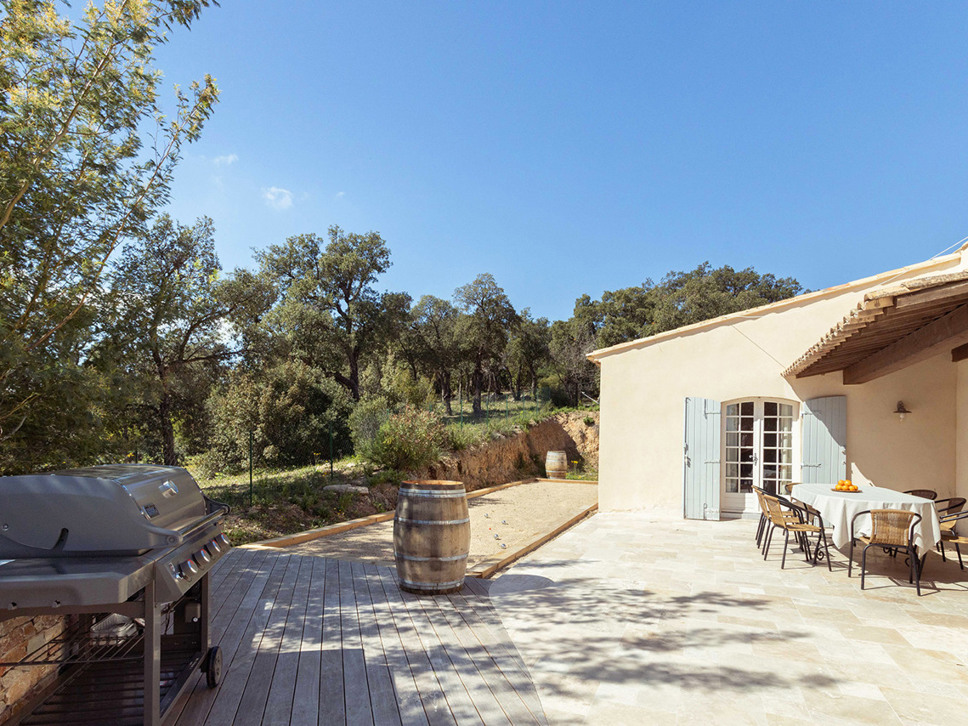 De villa gelegen op een heuvel biedt fraai uitzicht over de Provençaals heuvels richting de Middelandse Zee. De villa biedt veel privacy voor een rust, natuur- én strandvakantie in één. Er zijn diverse terrassen met zon of schaduw. In totaal geniet u van 100 m2 terras.