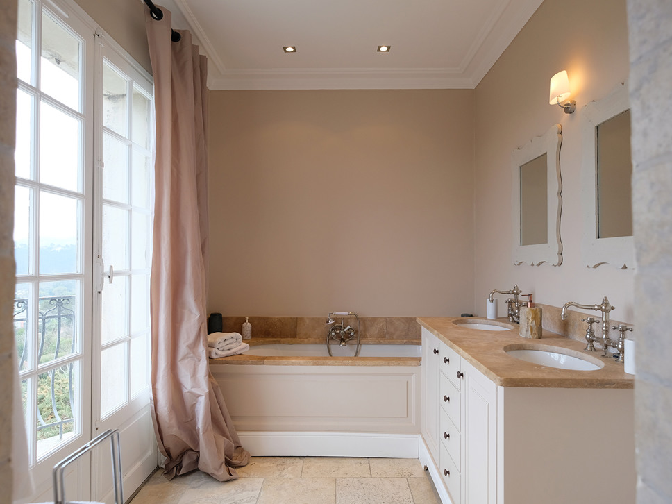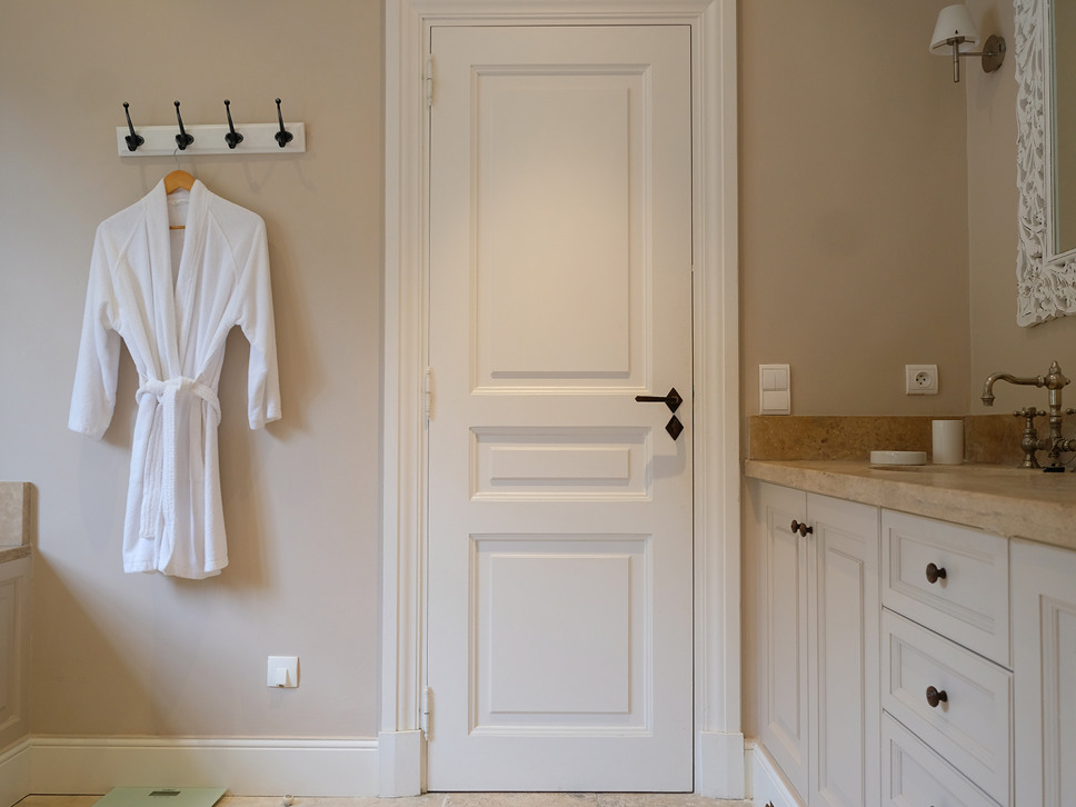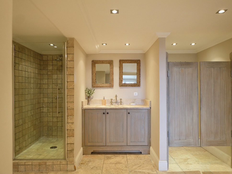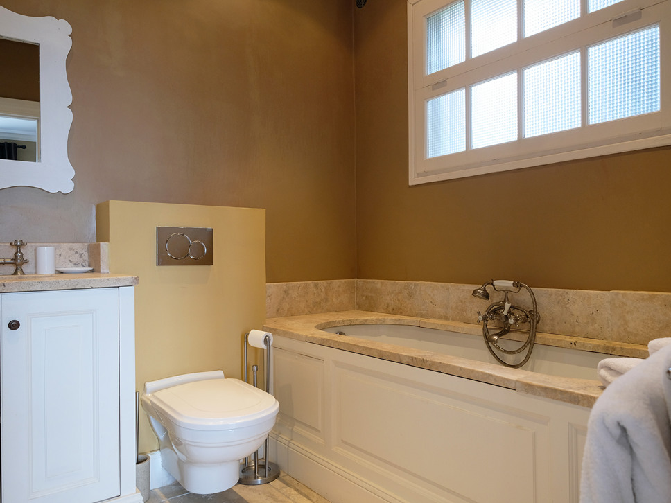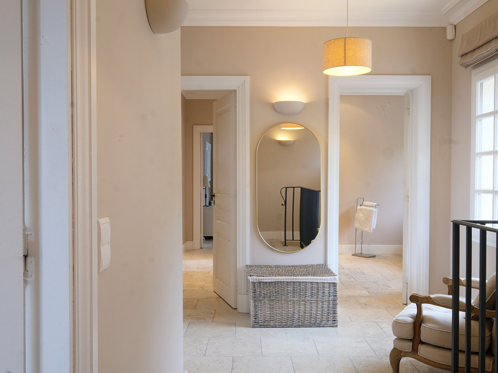 Slaapkamer 4, ook op de 2e verdieping, biedt een tweepersoonsbed en maakt gebruik van een royale badkamer (ligbad, dubbele wastafel en WC) op de gang, recht tegenover de slaapkamer. Voorzien van airconditioning