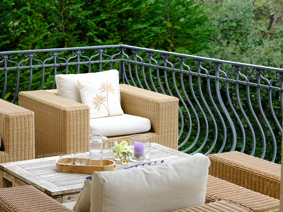 Op de terrassen en balkons o.a. staan enkele loungebanken alsook een grote eettafel vanwaar mooi zeezicht.