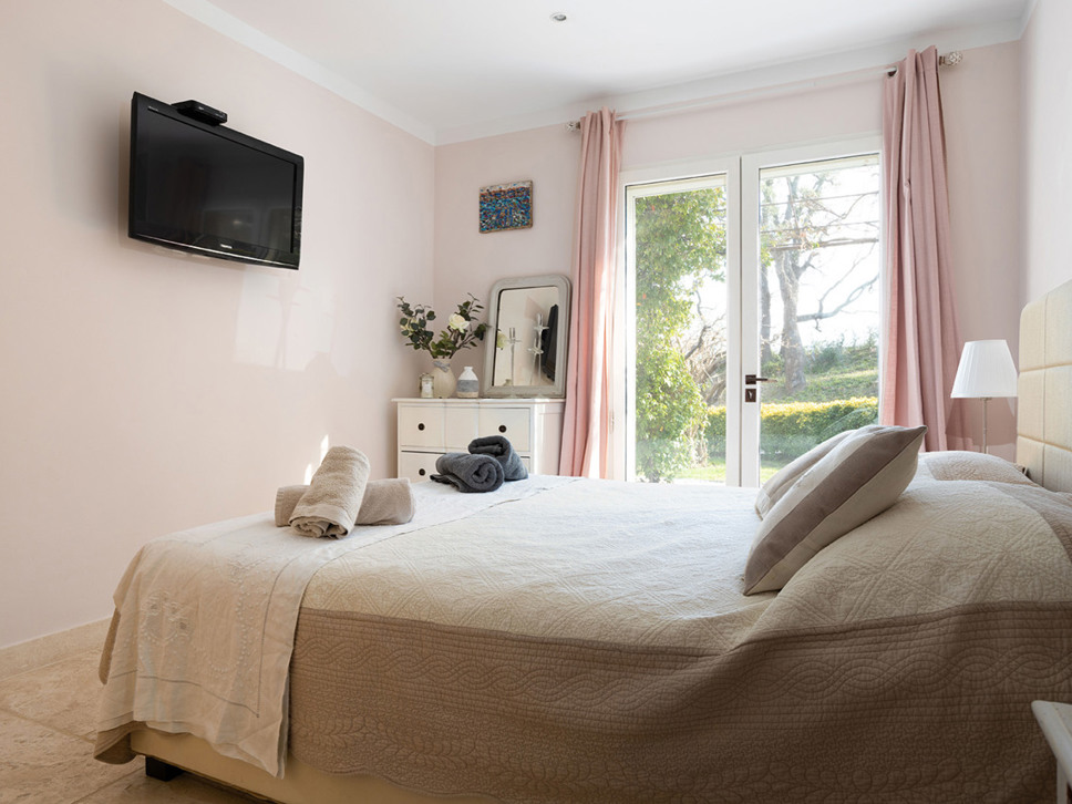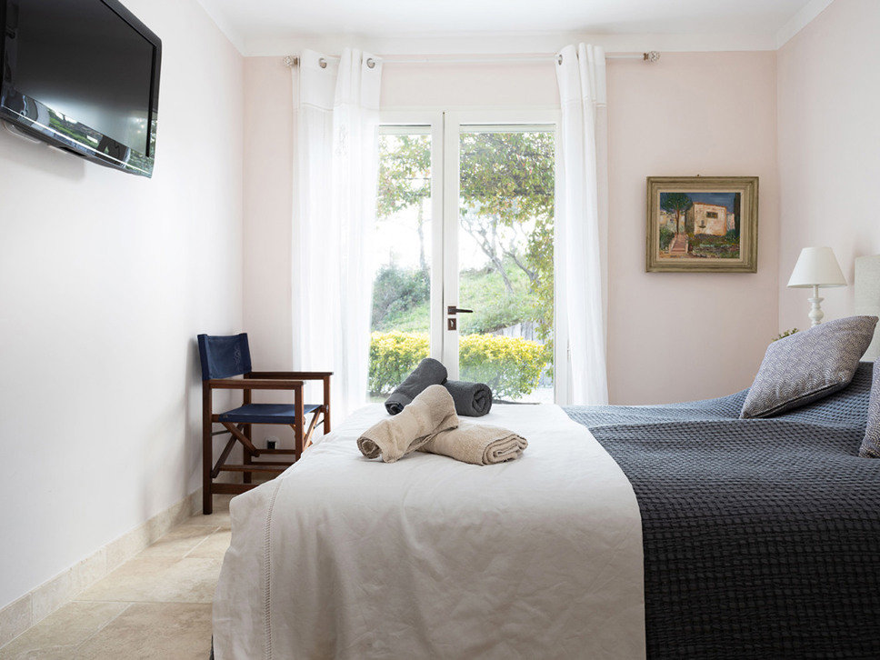 Begane grond, op de slaapkamers 3 en 4 op de begane grond staan ook tweepersoonsbedden (158x180). De slaapkamers delen een comfortabele badkamer (douche en W.C). Beiden slaapkamers bieden toegang tot het terras met tuinmeubelen aan de zijkant van de villa.