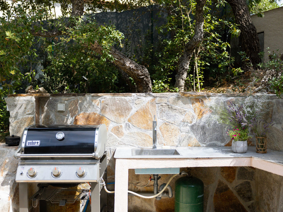 Er is tevens een mooie zomerkeuken met Weber Plancha BBQ.