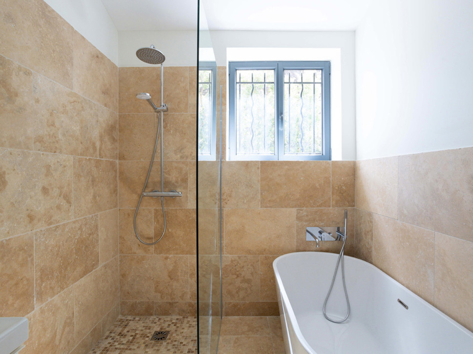 De villa biedt 4 slaapkamers en 3 badkamers. Er zijn 2 en-suite badkamers en 1 onafhankelijke. Verder zijn er 2 onafhankelijke toiletten.