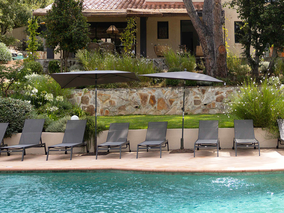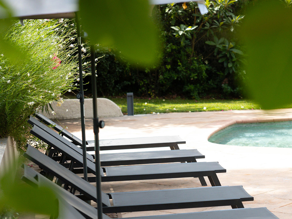 Het privézwembad is groot (11 x 5 m) en loopt van 1.50 m naar 2.50 m diep. Het zwembad is verwarmbaar. Rondom het zwembad zijn grote natuurstenen terrassen aangelegd met ligbedden en parasols (2 parasols, 8 ligbedden).