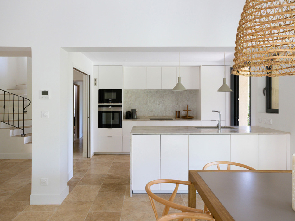 Alles is aanwezig, ook voor de meest veeleisende kookliefhebber. Zowel vanuit de living als vanuit de woonkeuken met eettafel is er bijzonder fraai uitzicht richting terras en zwembad.