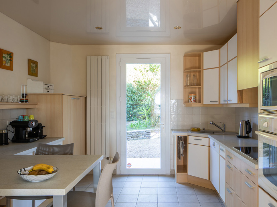 De keuken, ook van buitenaf bereikbaar wat handig is voor de boodschappen, is compleet uitgerust en o.a. voorzien van vaatwasser, koelkast, oven, magnetron, Nespresso apparaat en een keukentafel.