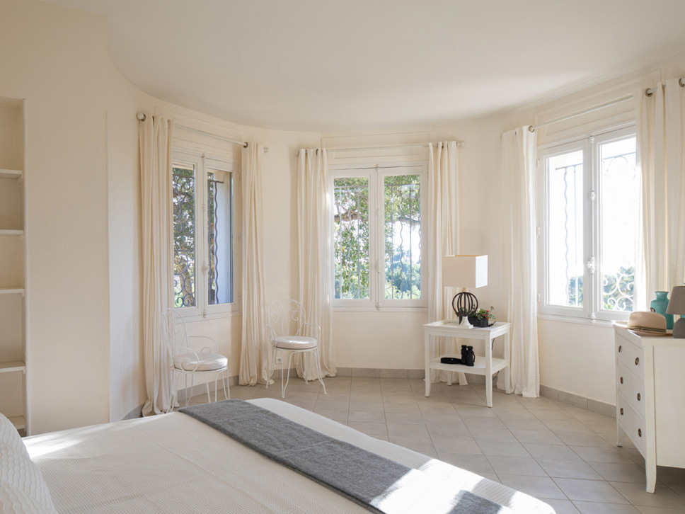 De villa beschikt over 4 slaapkamers, 3 toiletten en 2 badkamers. Alle slaapkamers bevinden zich op de 1e verdieping. Slaapkamer 1 is de master bedroom welke zich in het torentje bevindt. Het bed is tweepersoons 2x90x190. Ook slaapkamer 2 biedt een tweepersoonsbed van 2x90x190. Slaapkamer 3 biedt naast het tweepersoonsbed (160x200) een leuk extraatje in de vorm van het balkon van waar mooi zicht op Saint Tropez. (misschien is dit wel de master bedroom?). De 4e slaapkamer bevindt zich aan de zijkant van de villa. Ook hier staat een mooi tweepersoonsbed (2x90x200). Leuke feature is het dakterras van 5 x 3 m met 2 leuke strandstoelen. In deze 4e slaapkamer is geen aparte kast om kleren op te hangen of op te bergen.