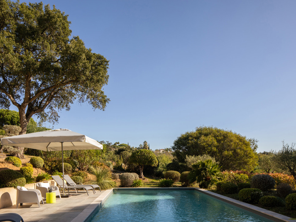 Luxe villa met privézwembad te Grimaud, Cote d'Azur. Op loopafstand (350 m) van rustig gelegen privéstrand. De villa biedt 100% privacy. Gelegen op Domaine Beauvallon met zicht op de baai van Saint Tropez. De villa is geschikt voor 8 personen.