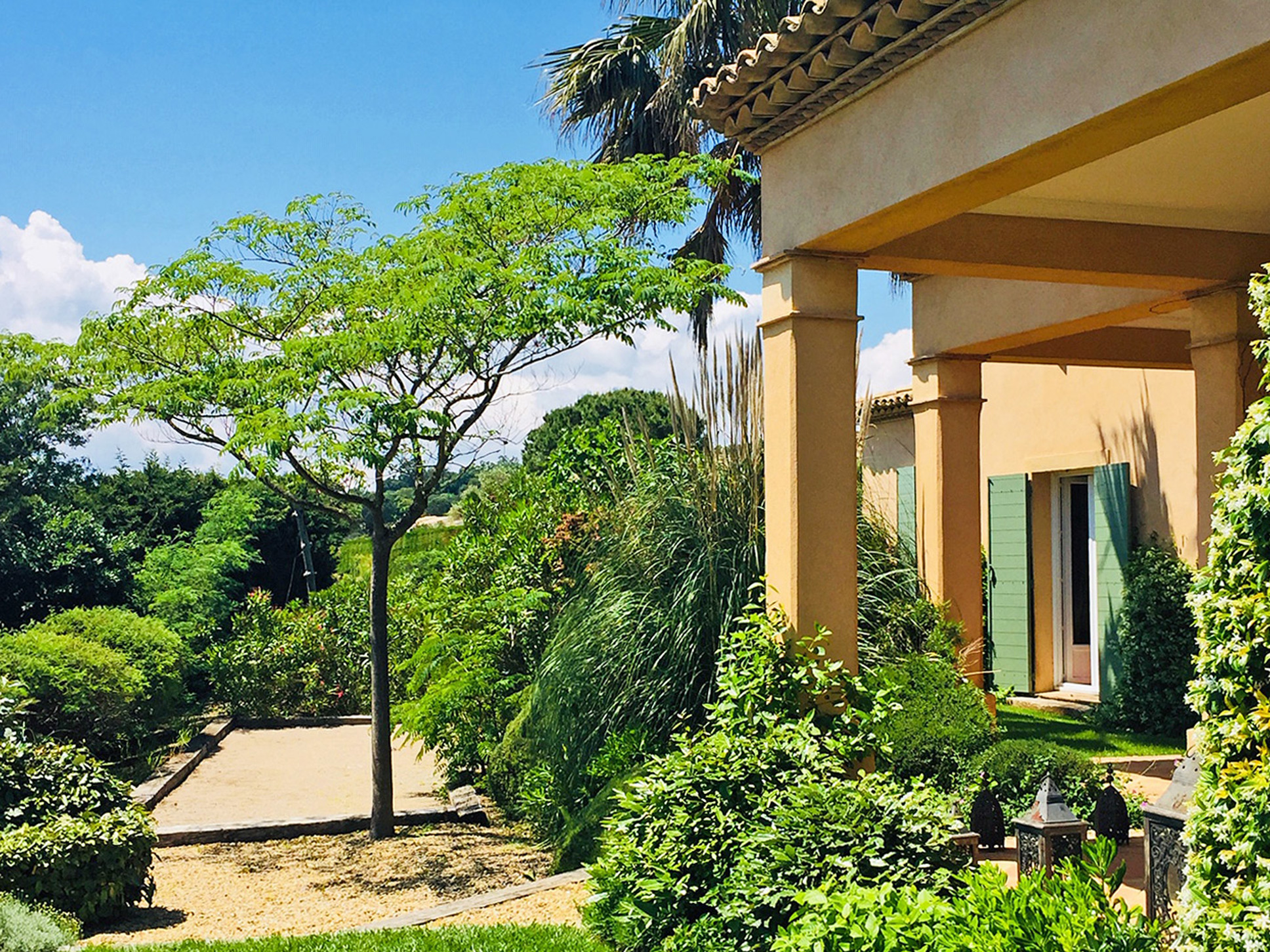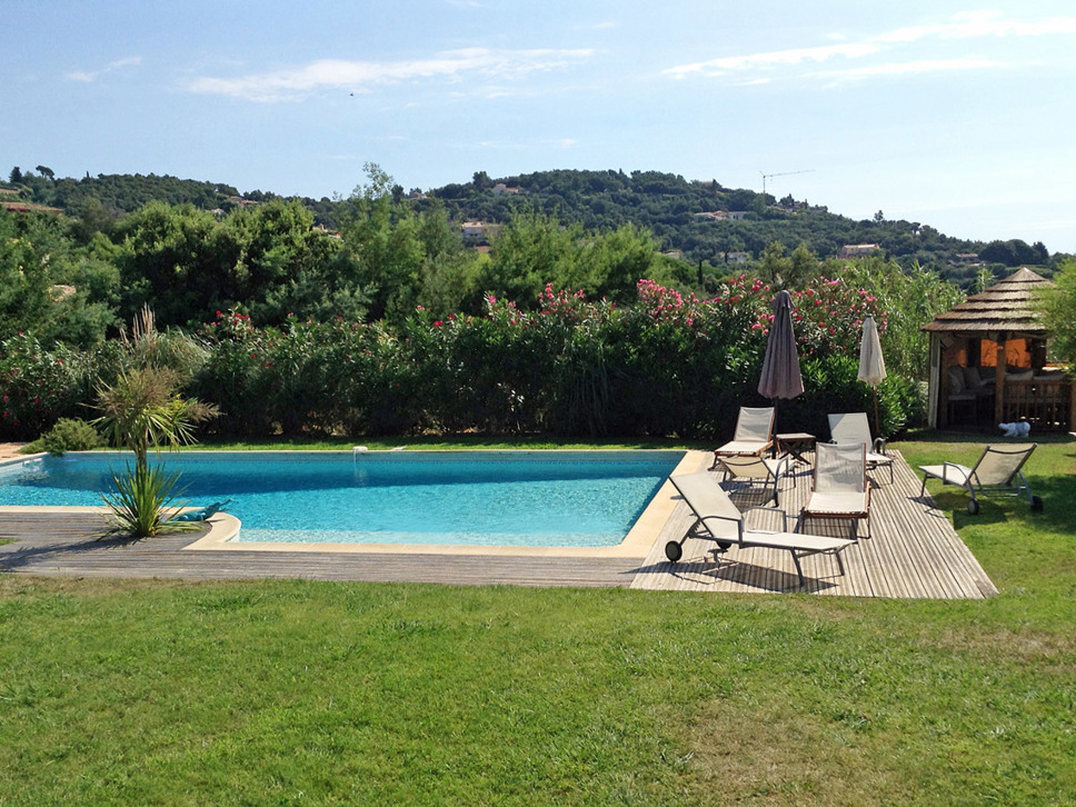 De villa, gelegen op het chique domein van Beauvallon, kenmerkt zich door veel privacy en rust. Een ruimtelijk ingerichte tuin van 3000 m2 omringt de villa. De tuin is verzorgd ingericht met Provençaalse borders, enkele mimosabomen, een koele grasmat en een extra groot zwembad (6x12).