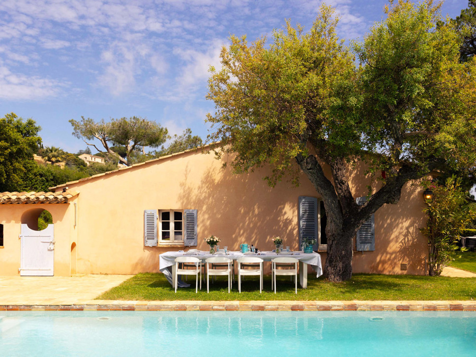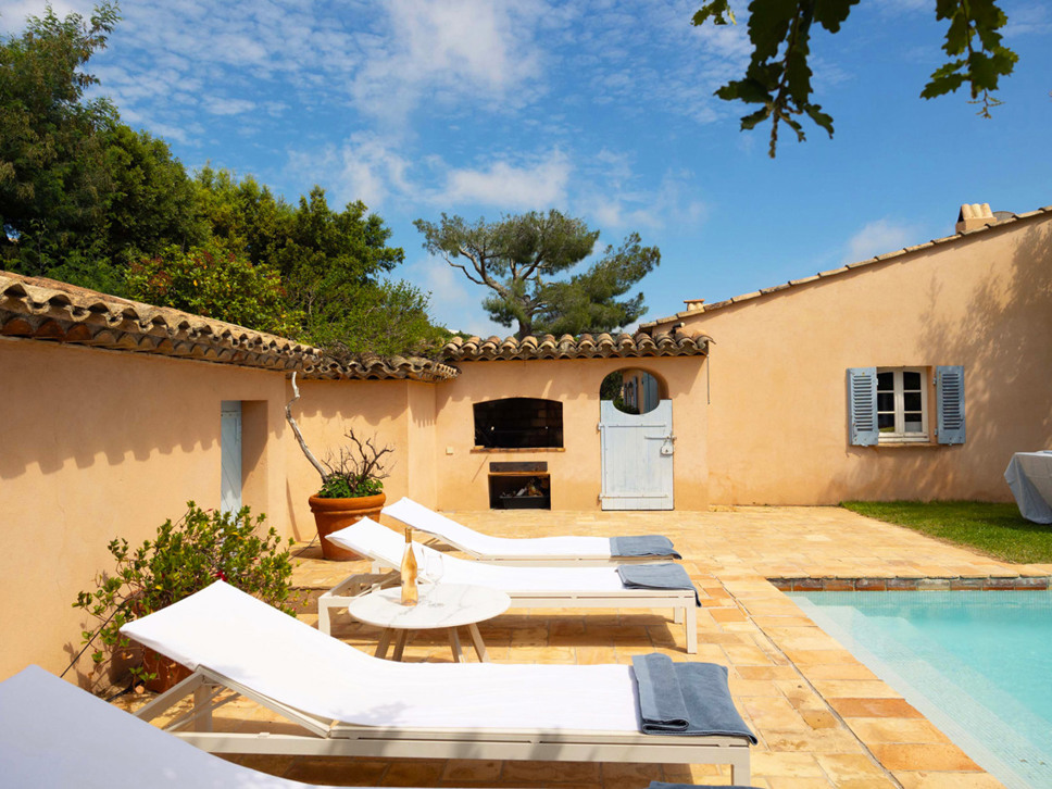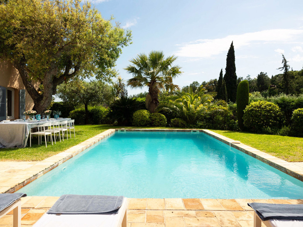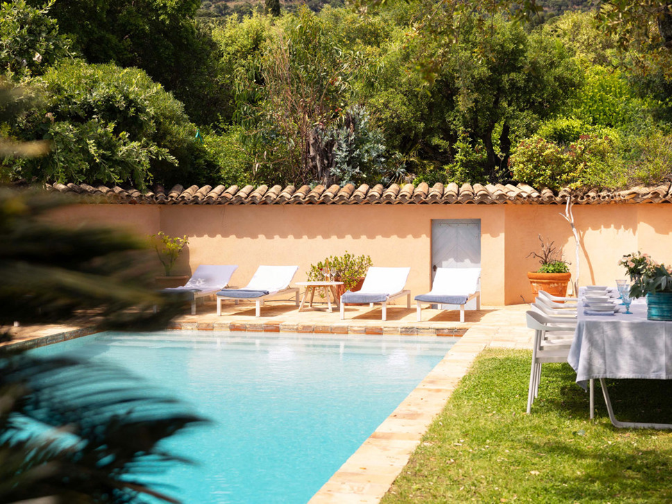 Vrijstaande villa in Provençaalse stijl met privé zwembad in Grimaud, Côte d'Azur. Zeer sfeervol ingericht. Fraai luxe buitenmeubilair. Mooie en romantische tuin. De villa is geschikt voor 8 personen.