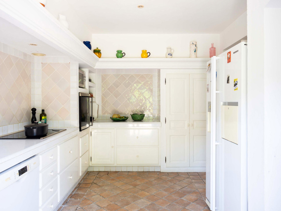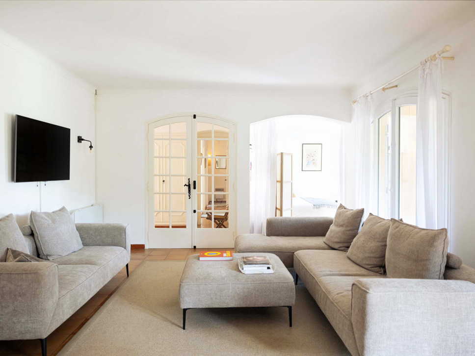Deze bijzonder charmante en stijlvol ingerichte villa is volledig gelijkvloers en ademt rust en comfort. De uitnodigende living is smaakvol ingericht met comfy zitmeubelen en opent direct naar een schitterend overdekt terras – een ideale plek om te ontspannen in de schaduw of te genieten van lange zomeravonden.
