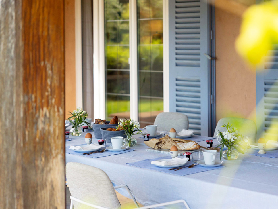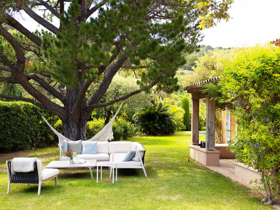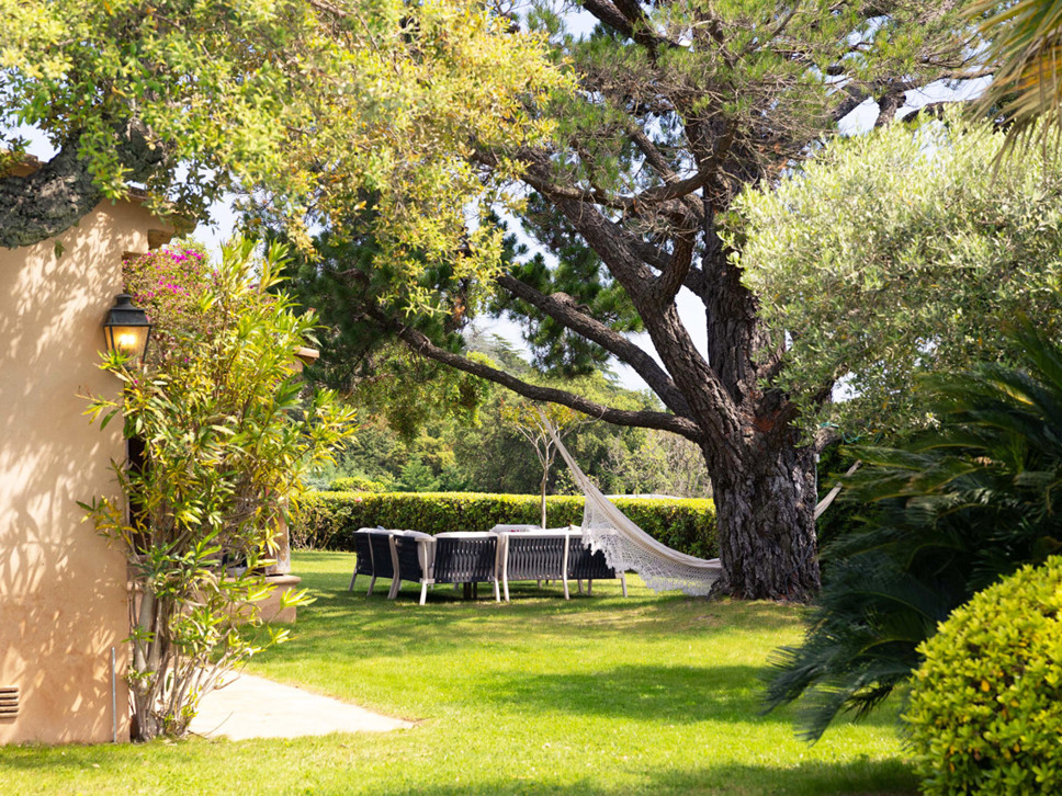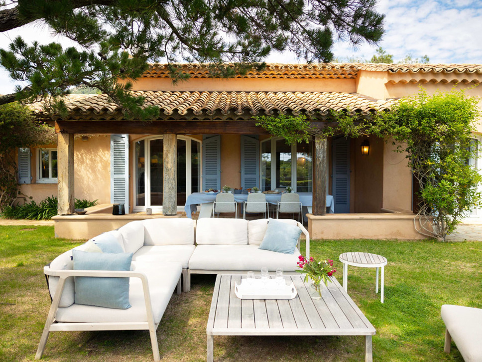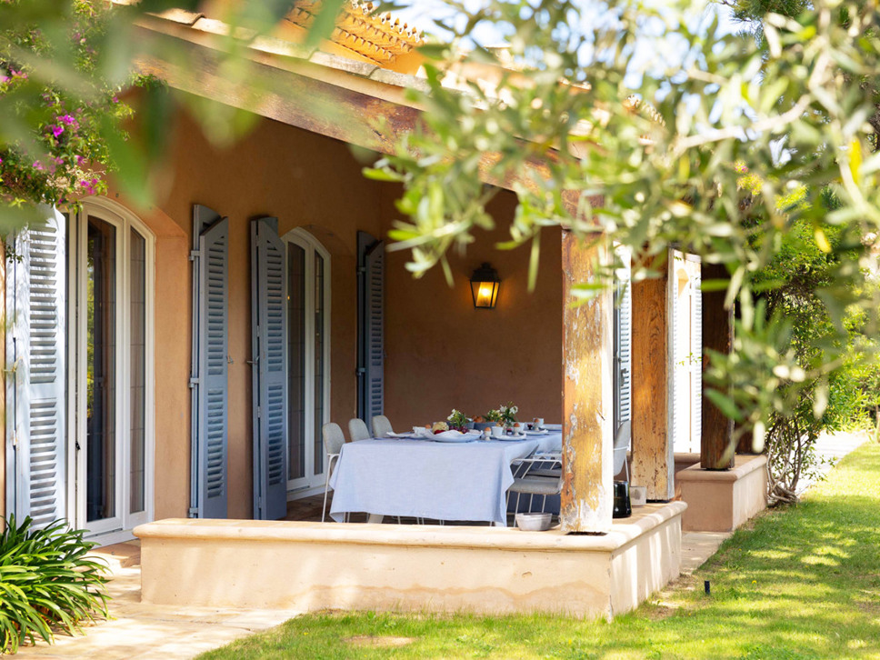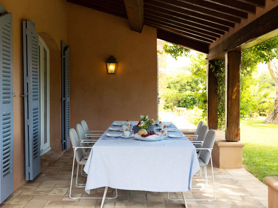 Centraal in deze ambiance ligt het fraaie, royaal overdekte terras, direct grenzend aan de living. Dit is zonder twijfel het kloppend hart van het buitenleven. Hier vindt u een grote eettafel, perfect gepositioneerd met uitzicht op de tuin én de schitterende Golf van Saint-Tropez. Of het nu gaat om een ontspannen ontbijt in de ochtendzon, een lange lunch in de schaduw, of een sfeervol diner onder de sterren: deze plek nodigt uit tot eindeloos tafelen en genieten.Het buitenmeubilair is van hoogwaardige kwaliteit en ruim voorhanden. Een comfortabele loungeset, twee ruime eettafels en meerdere luxe ligbedden bieden voor ieder moment van de dag een perfecte plek om tot rust te komen.