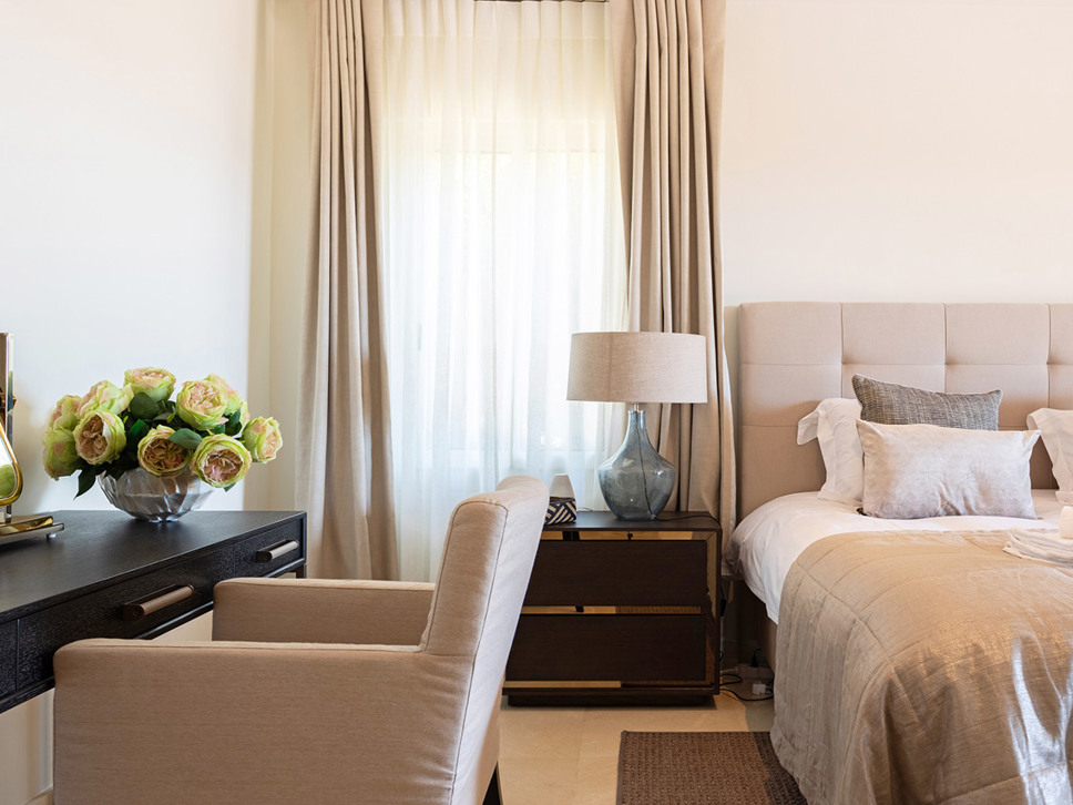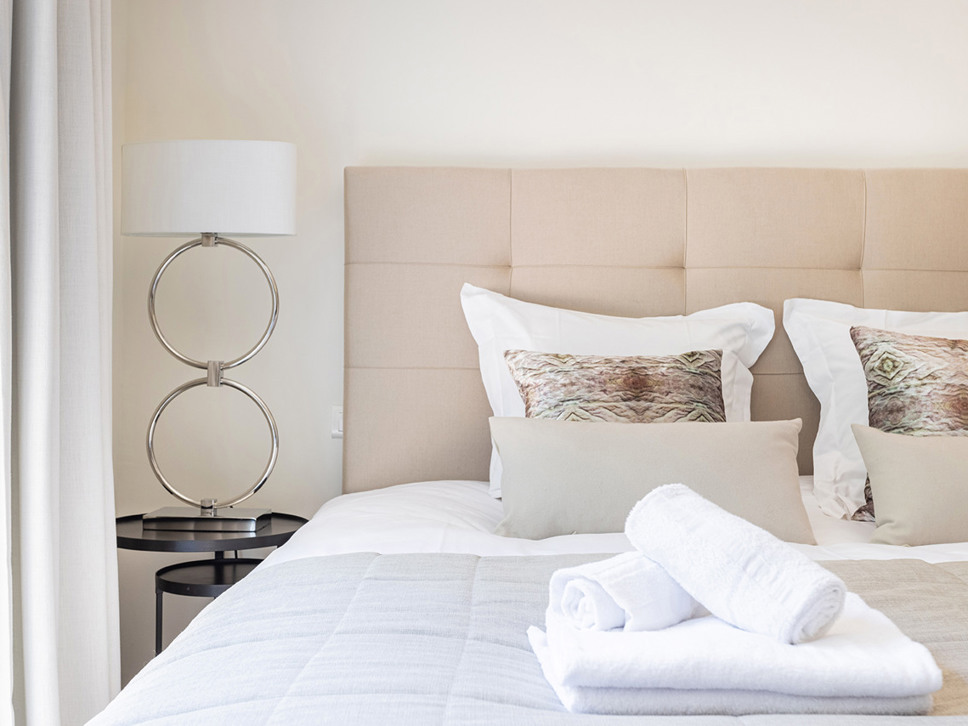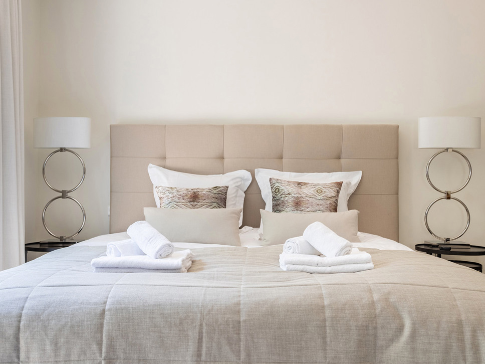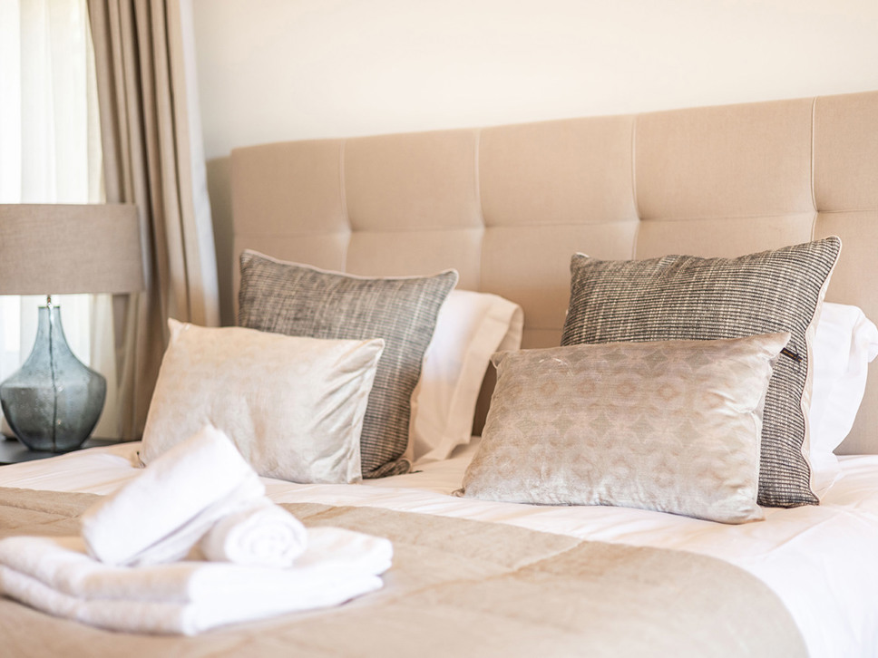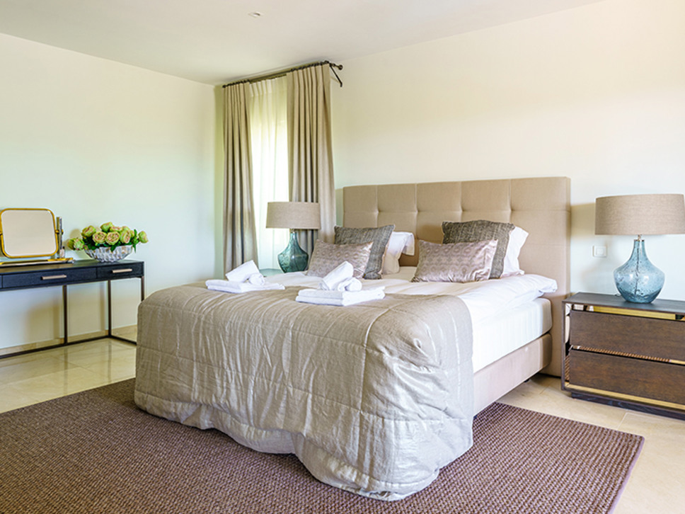 Er zijn in totaal 6 slaapkamers; Op de begane grond bevinden zich 4 slaapkamers. Alle slaapkamers hebben een en-suite badkamer met douche of bad. Alle slaapkamers beschikken over een luxe boxspring tweepersoonsbed (180x200) en fraai bedlinnen. Op de eerste etage / mezzanine bevidt zich slaapkamer 5 met een tweepersoonsbed en met en-suite badkamer.