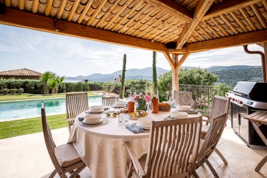Slaapkamer 3 is een 2e ouderslaapkamer met een tweepersoonsbed (180x200) en de en-suite badkamer is voorzien van een luxe inloopdouche, wastafel en W.C. Erg leuk vinden we het balkon vanwaar een prachtig zicht over de wijnvelden en de Middellandse Zee.