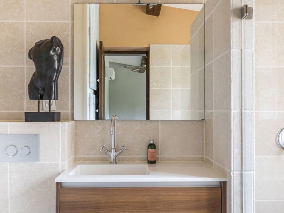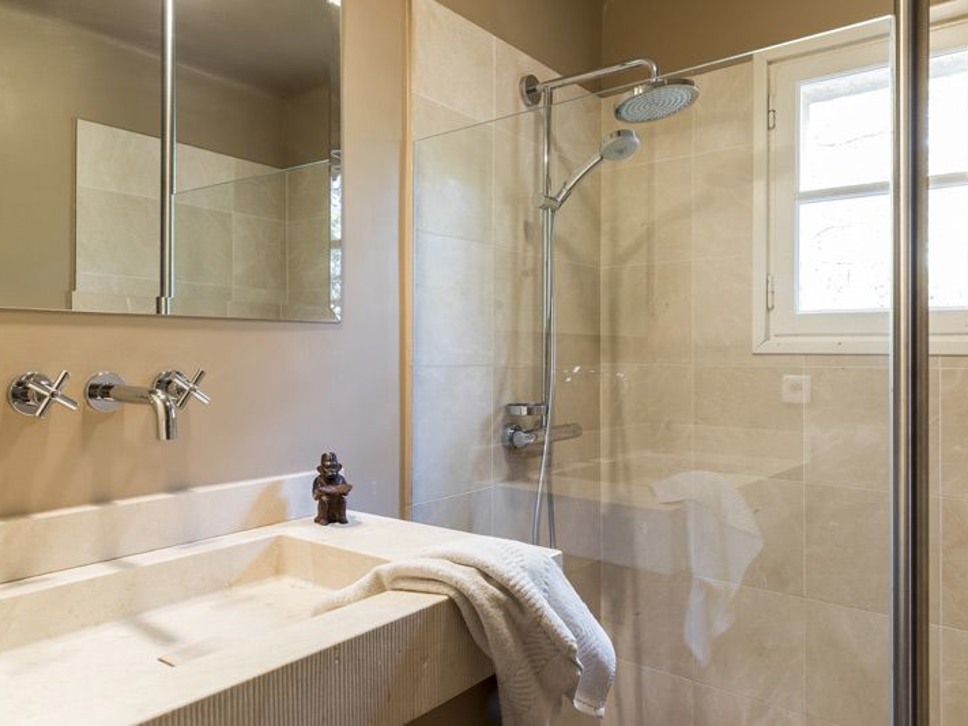 In slaapkamer 4 staan twee eenpersoonsbedden (90x180) met nieuwe en-suite badkamer met een wastafel en douche. De derde badkamer bevindt zich op dezelfde etage als de slaapkamers. Ook is er een separaat toilet op deze verdieping.