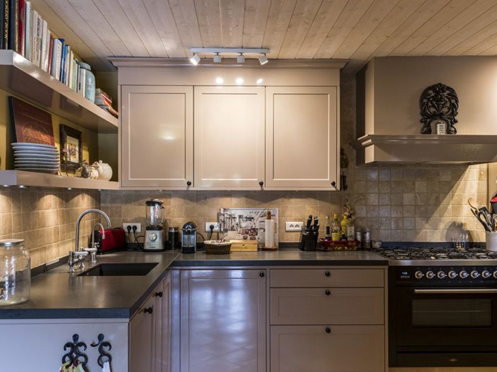 De begane grond bestaat uit een living, een moderne keuken met bijkeuken en een eetkamer. U treedt binnen via de voordeur welke uitkomt in de ruime moderne keuken. De keuken is compleet ingericht en voorzien van een 6 pits gasfornuis, een grote oven, een tweede oven met magnetron en coocker. Nespresso-apparaat aanwezig.