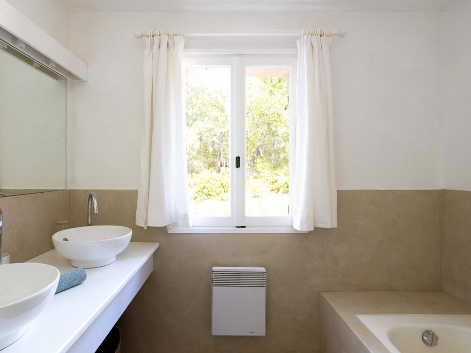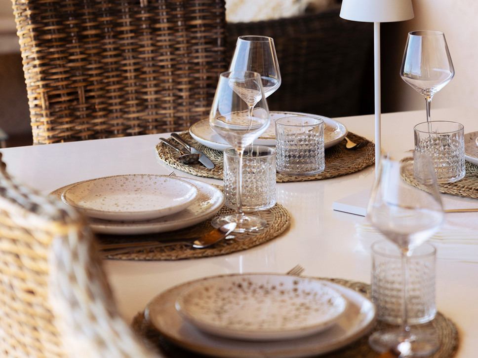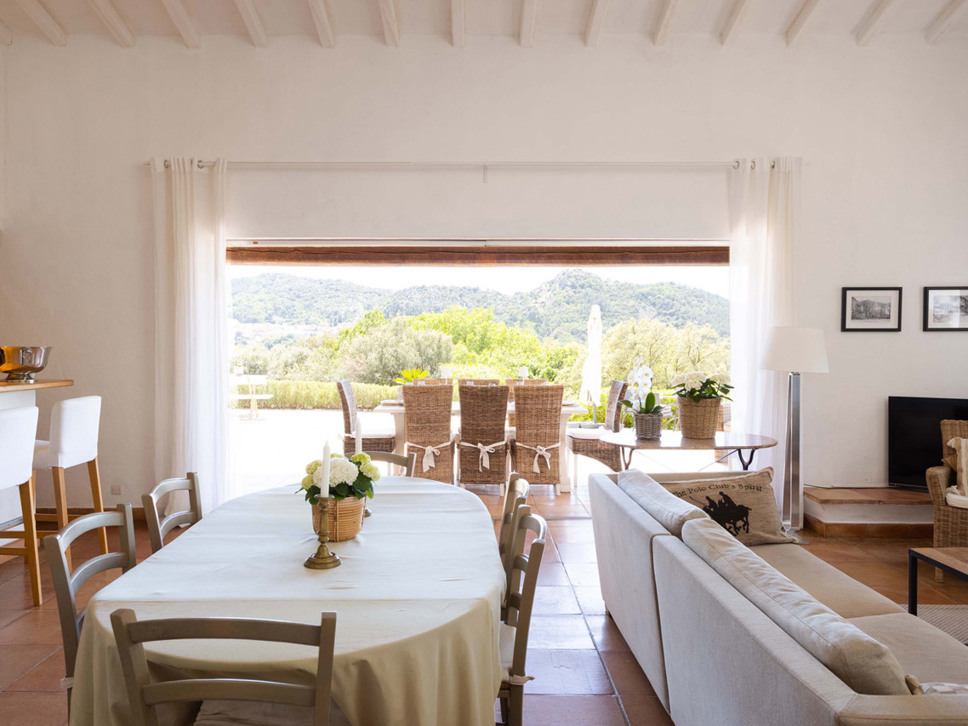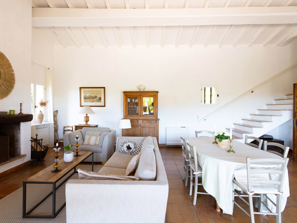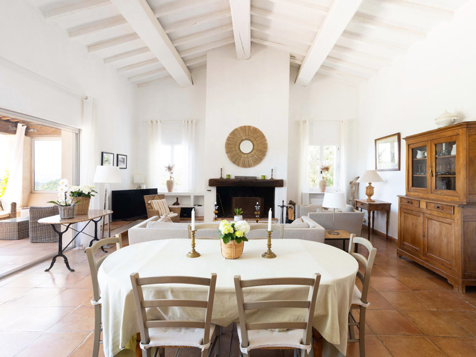 Dit is een zeer sfeervolle villa met historie. Mooie originele plavuizen op de vloer, wit stucwerk en zware houten balken in het plafond. De living is royaal te noemen en de overgang van binnen naar buiten spreekt ons zeer aan. De inrichting is Scandi country chic in een beige kleurstelling. Alles ademt hier rust en ontspanning uit.