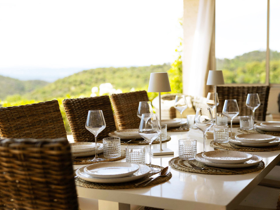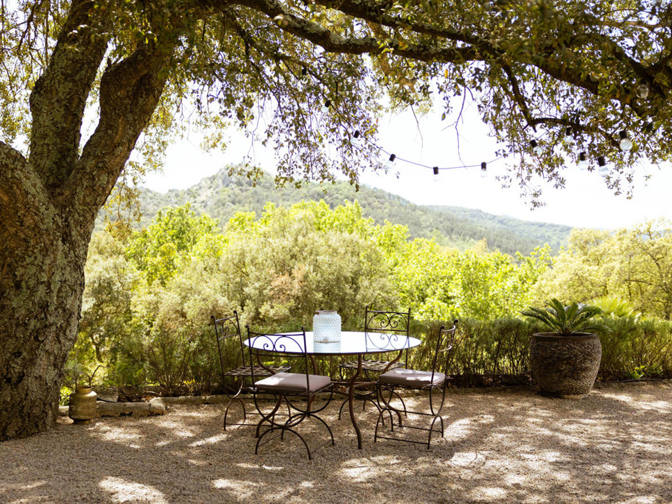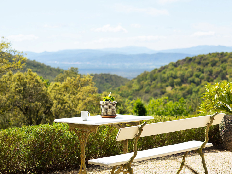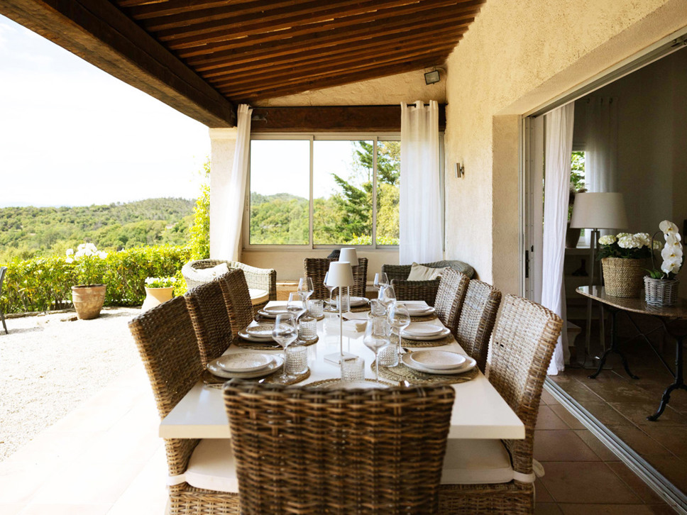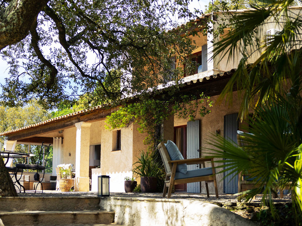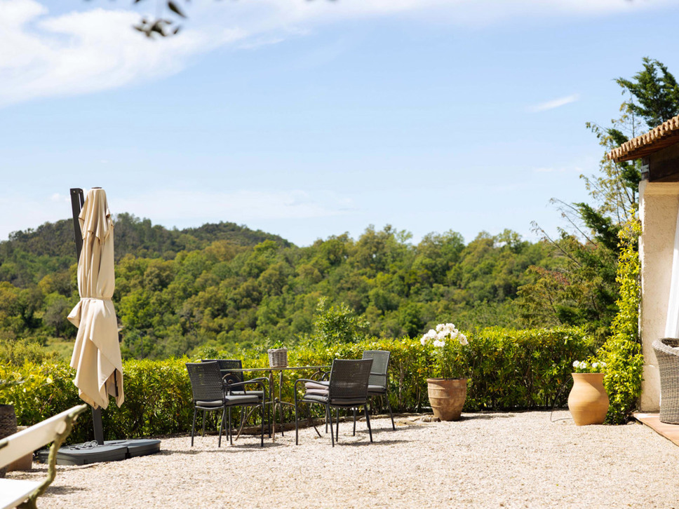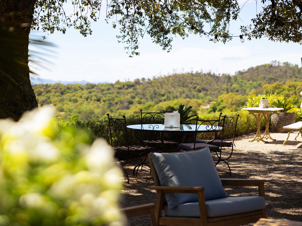 Rust en privacy zijn gegarandeerd op het grondstuk van 6500 m2. Er staan diverse zitjes op het kiezelterras en grote bomen bieden heerlijke natuurlijke schaduw. Er staat ook een eettafel in de villa maar u maakt vast vaker gebruik van de eettafel op het overdekte terras vanwaar mooie vergezichten over de Provençaalse heuvels en het dorp La Garde Freinet. Er is voor buiten kook liefhebbers een kolen BBQ.