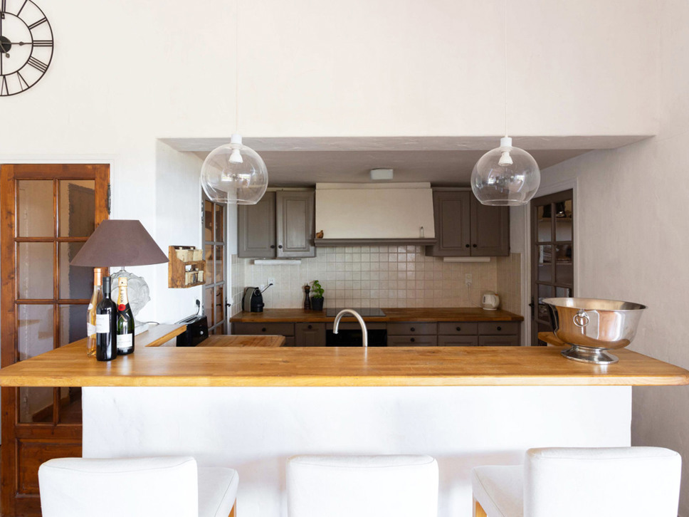 De traditionele keuken is half open en biedt alle voorzieningen (biedt een oven, magnetron, waterkoker, vaatwasser, filter en Nespresso koffieapparaat). Leuk vinden we ook de barkrukken aan het werkblad. Een leuke plek om de dag door te nemen met een goed glas rosé terwijl er gekokkereld wordt in de keuken.