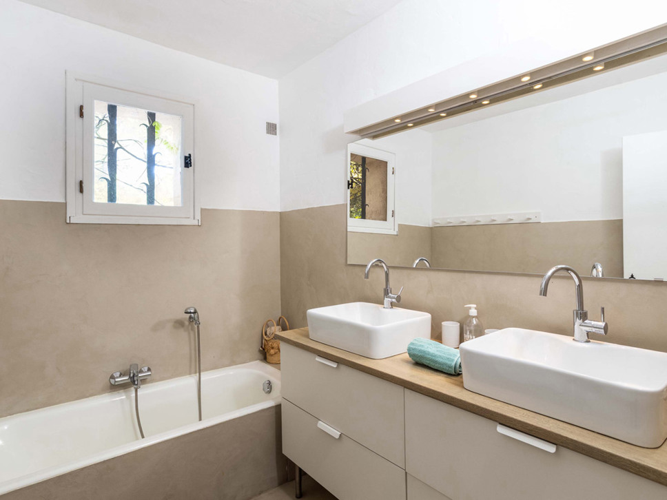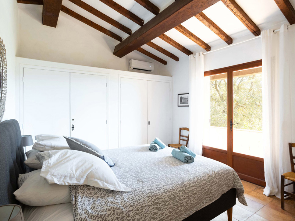 De villa biedt 5 slaapkamers en 4 badkamers. 4 gelegen in de villa en 1 separaat in het poolhouse. De 4 slaapkamers in de villa zijn voorzien van airconditioning. Slaapkamer 1 bevindt zich op de 1e verdieping. Er staat een tweepersoonsbed (160x200). De badkamer is en-suite met douche en separate W.C.