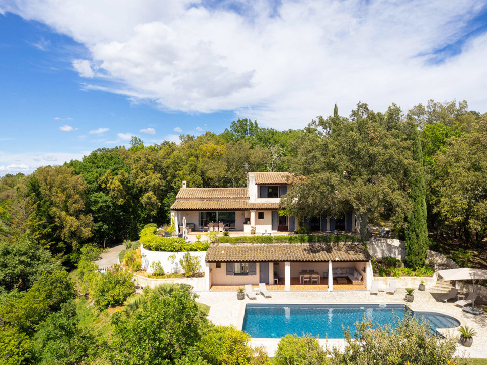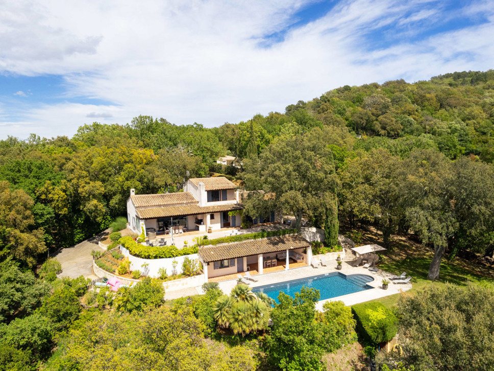 Comfortabele en sfeervolle villa met privé zwembad in de bossen bij La Garde Freinet. Goede privacy, royaal terrein 6500 m2. Royaal zwembad. Geschikt voor 8-10 personen.
