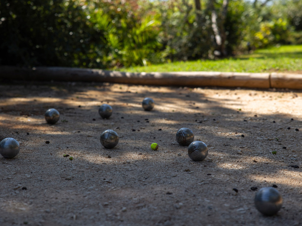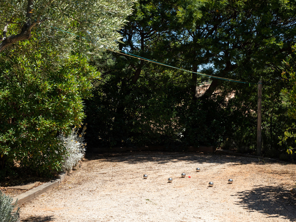 Naast het zwembad bevindt zich een houten terras met daarop een overdekte comfortabele loungehoek met banken en stoelen. Een ideale plek om te ontspannen in de schaduw. Vaste barbecue aanwezig. Ook met Jeu de Boules baan.