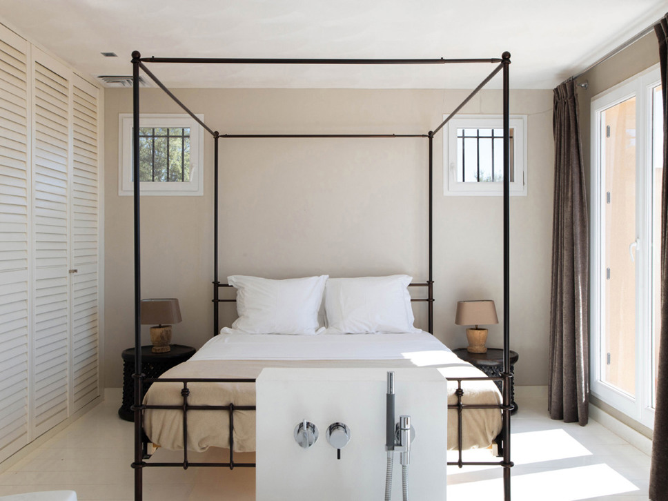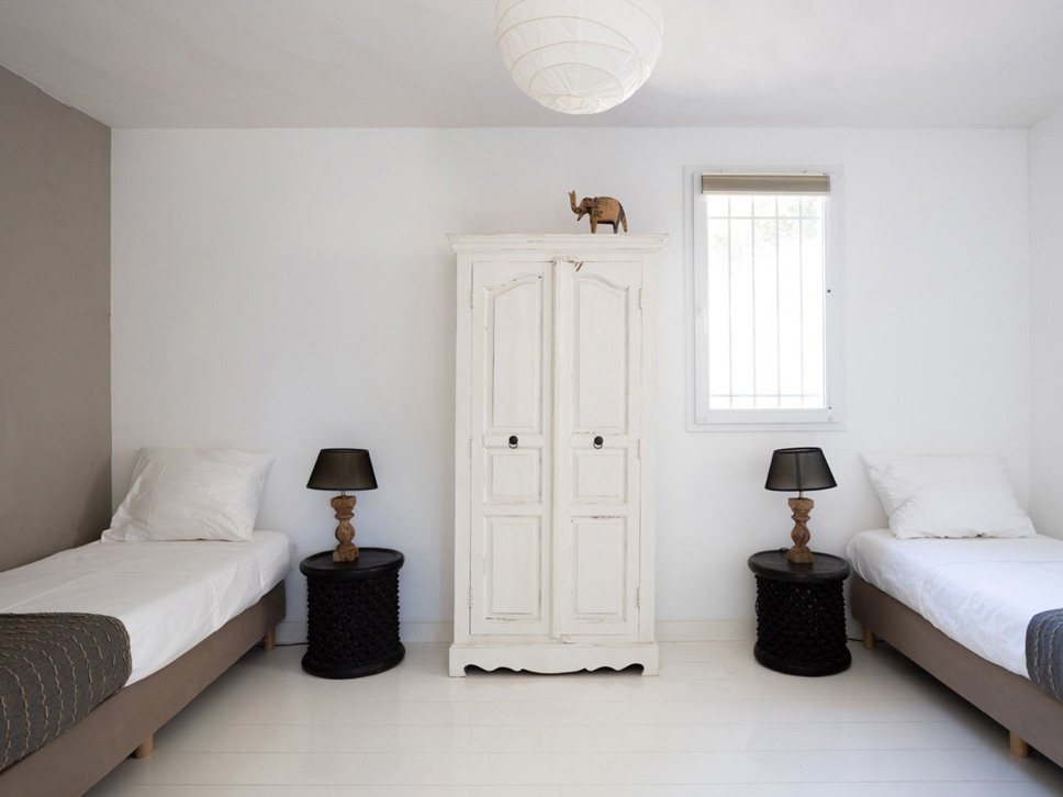 Er zijn in totaal 4 slaapkamers. Alle slaapkamers zijn voorzien van airconditioning. De indeling van de slaapkamers maakt de villa ideaal voor een verblijf van 2 gezinnen.Op de begane grond bevinden zich twee slaapkamers naast elkaar en een zeer luxe badkamer. Slaapkamer 1 heeft een tweepersoonsbed (160x200). Slaapkamer 2 beschikt over twee eenpersoonsbedden, type boxspring (2x90x200).