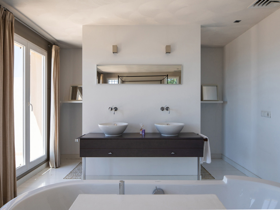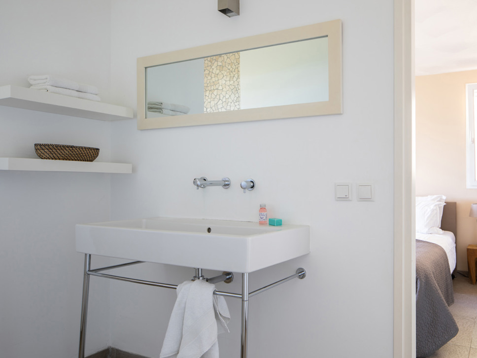 Op de 1e verdieping bevinden zich de twee andere slaapkamers. Slaapkamer 3 is een indrukwekkende master bedroom ook met een tweepersoonsbed (160x200) met een en-suite badkamer (ligbad en inloopdouche) en privé terras met panoramisch uitzicht op zee. Slaapkamer 4 beschikt over twee eenpersoonsbedden, type boxspring (2x90x200). Separaat is nog een toilet aanwezig.