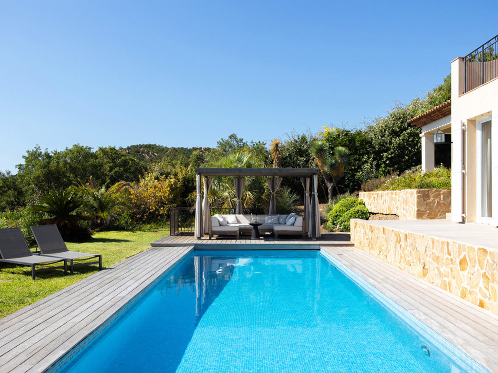 Luxe villa met privé zwembad, La Londe les Maures, Côte d'Azur. Modern ingerichte villa. Het panoramisch zicht op de Middellandse Zee is indrukwekkend. Heerlijk ruim. Ook voor golfliefhebbers. Geschikt voor 8 personen.