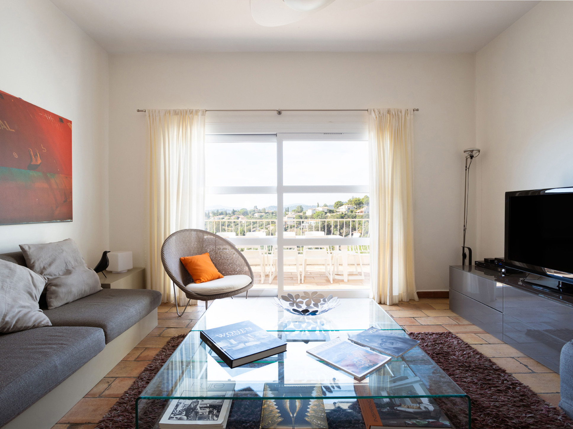 De villa beschikt over een ruime woonkamer, stijlvol ingericht met kleuraccenten. Er is een grote, comfortabele zithoek waar u zowel van het schitterende uitzicht op zee als van de satelliettelevisie (52 inch Samsung HD). kunt genieten. Ook biedt de villa u glasvezel-internet, WiFi en airconditioning.