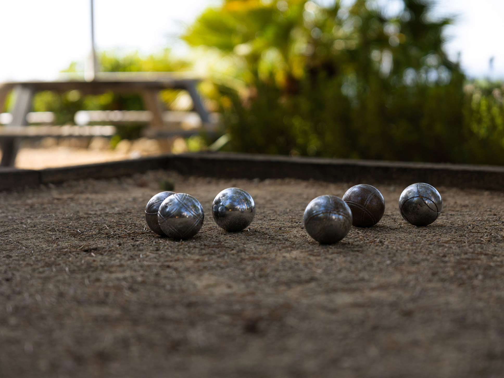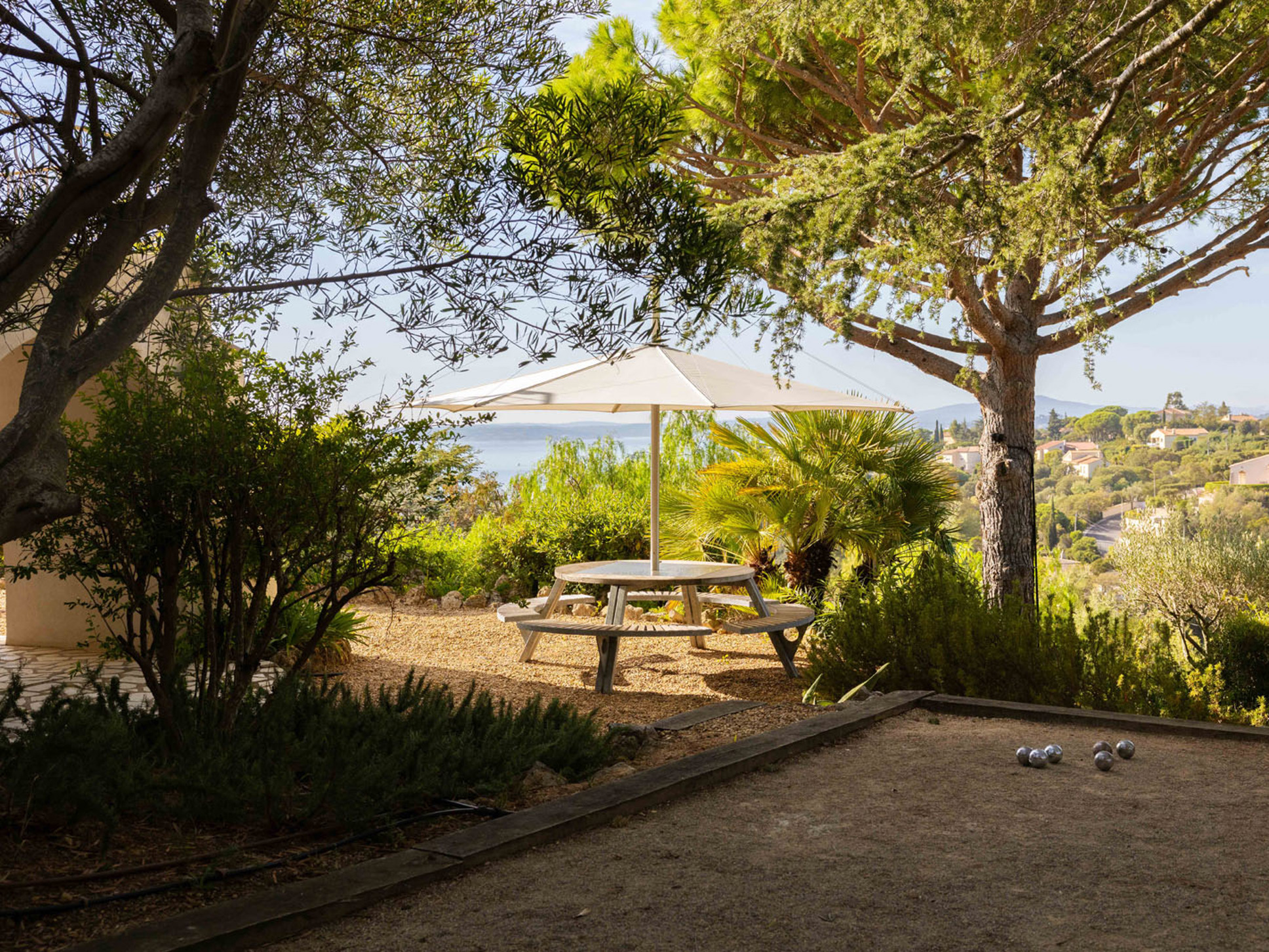 Naast de jeu-de-boulesbaan staat een gezellig aperitieftafeltje waar u heerlijk kunt zitten en van het uitzicht kunt genieten!