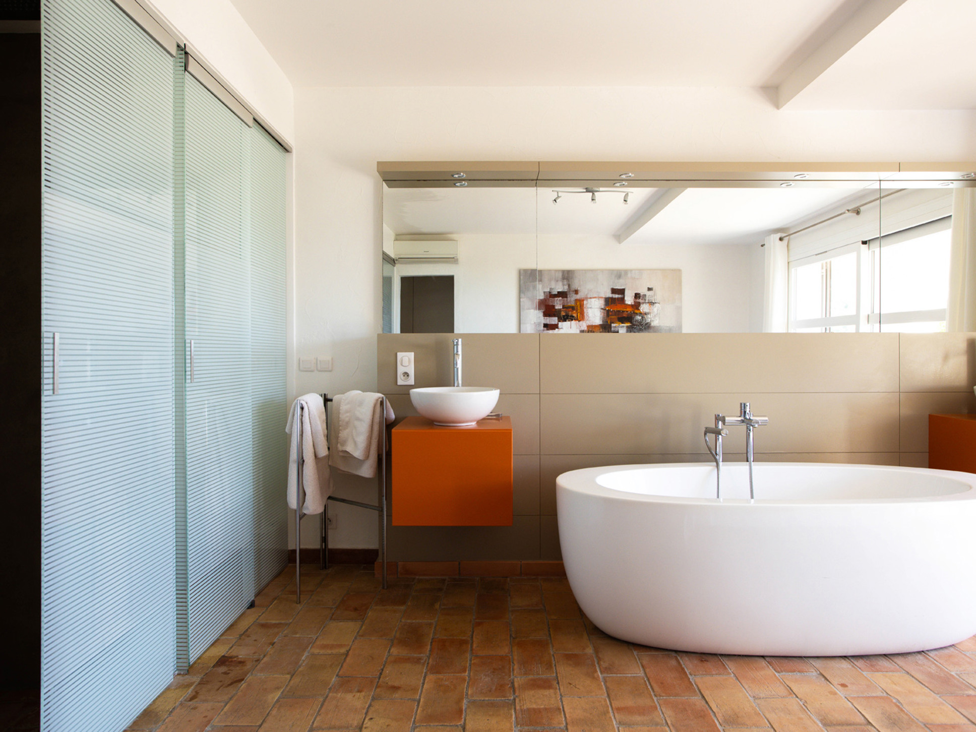 De villa heeft 5 ruime slaapkamers, elk met zeezicht en 5 kleurrijke luxe badkamers.