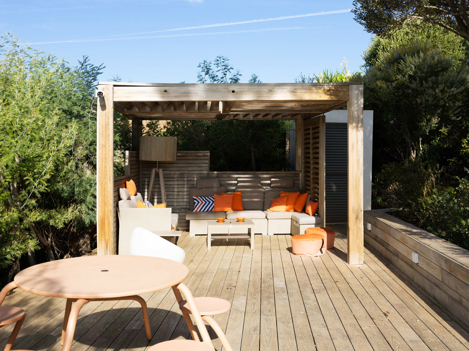 De buitenkeuken is uitgerust met een koelkast met apart vriesgedeelte, een vaatwasser en een gootsteen. U kunt hier de hele dag genieten van de zon tot aan de zonsondergang!
