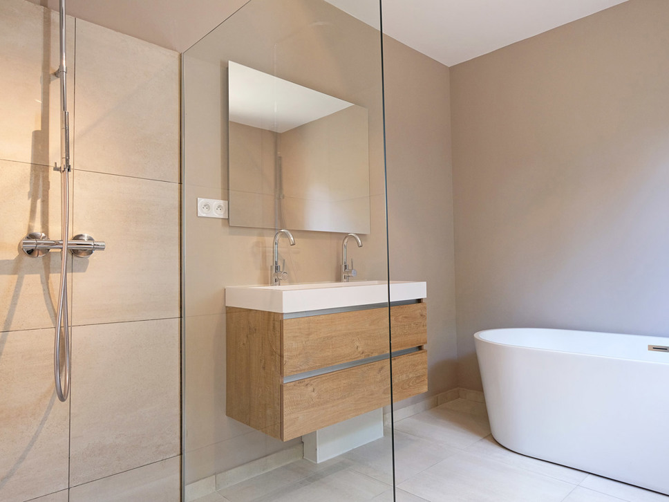 Op de begane grond; Slaapkamer 1 is voorzien van een tweepersoons bed (160x200) met en-suite badkamer (douche, separaat bad, dubbele wastafel). Ook hier ziet u het gietijzer weer terugkomen!
