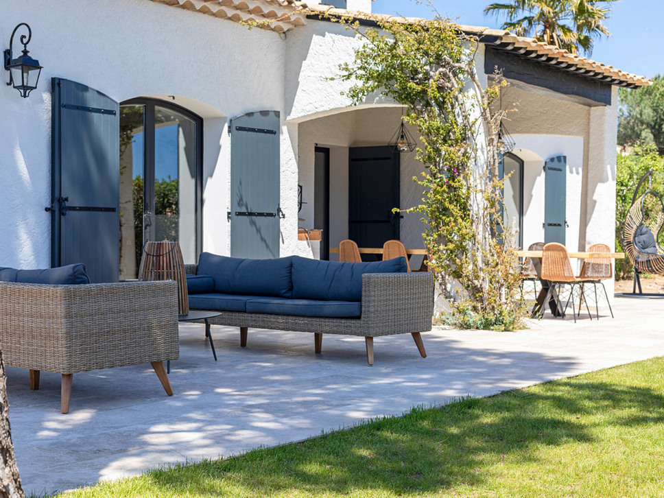 Een mooie loungeset ontbreekt niet op het terras. Zo kunt u hier goed vertoeven, een boekje lezen en tot rust te komen. Of heerlijk genieten van een goed glas rosé.