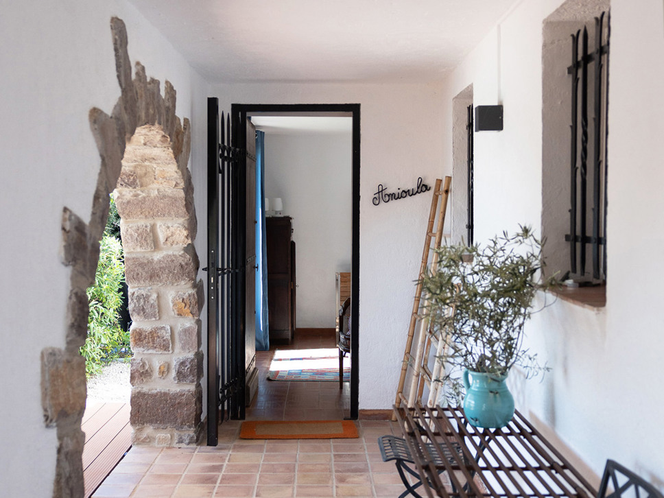 Op het niveau van het zwembad is er een 2e, ook overdekt, terras. Een zeer sfeervolle plekje met ook enkele comfortabele buitenmeubelen. De tuin verdient een aparte vermelding. Zeer sfeervol en goed onderhouden. Met name de hoek met de olijfbomen en daaronder de sun-loungers oogt zeer aangenaam.