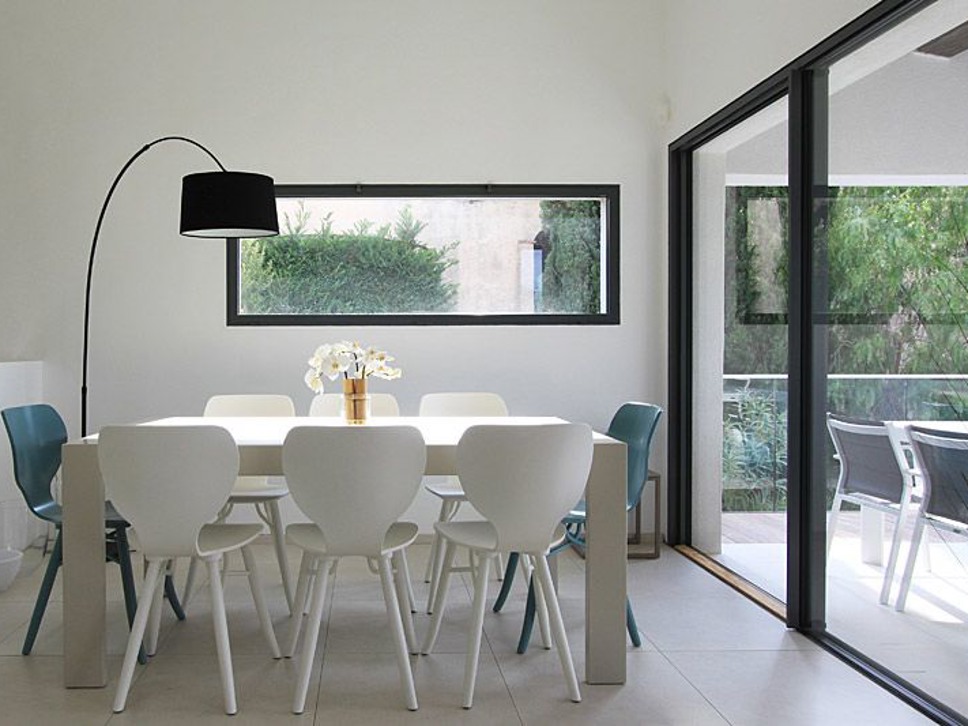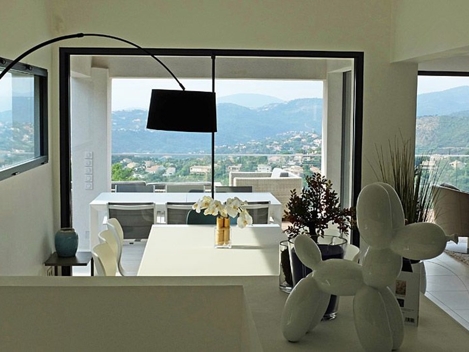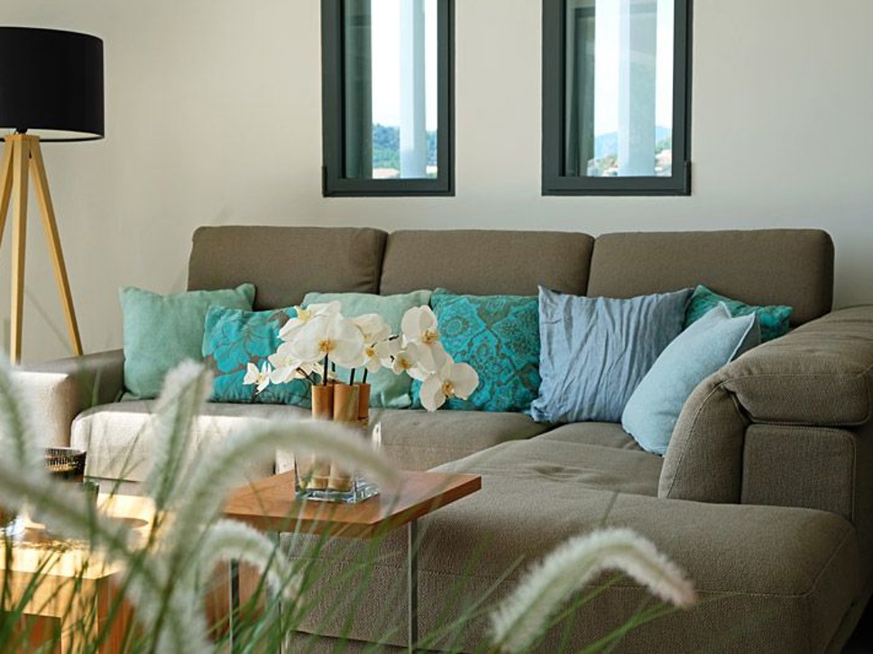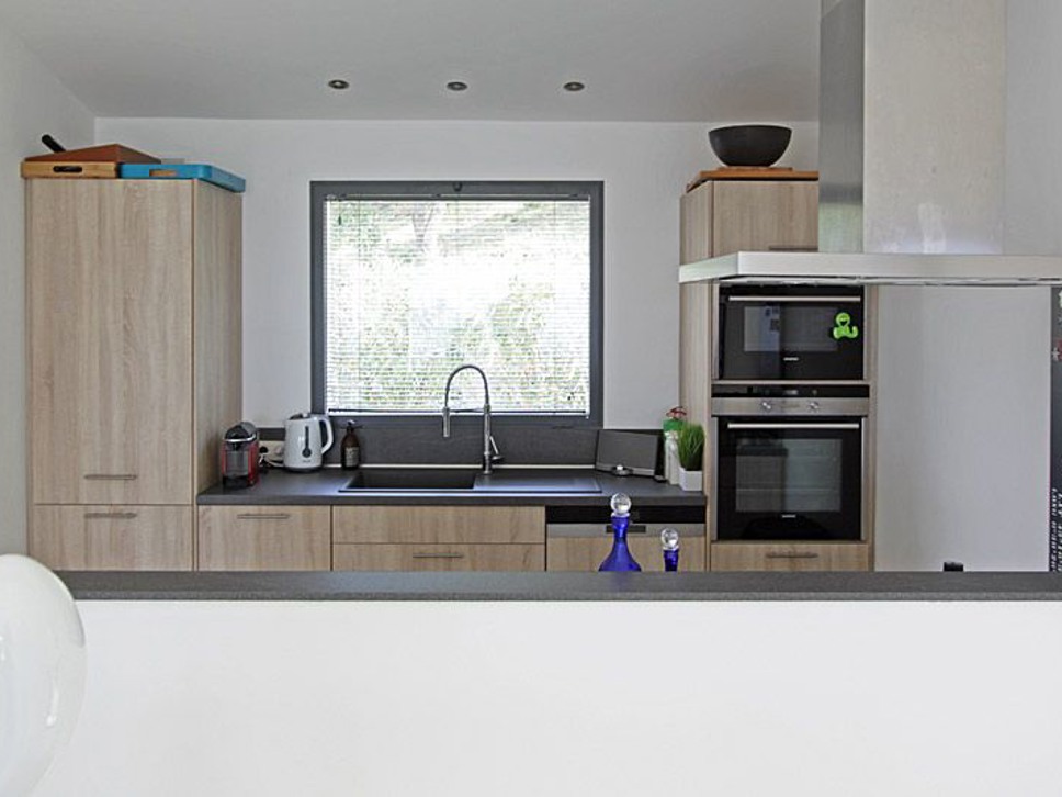 De villa heeft een moderne living die stijlvol en kleurrijk is ingericht. Een grote comfortabele zithoek staat zo opgesteld dat u uitkijkt op de Golf van Saint Tropez en de Provençaalse heuvels. in de TV hoek staat een grote 4K Ultra HD TV met NL en BE kanalen. Ook met DVD-speler en audio met iphone interface. Wifi ontbreekt niet. De moderne keuken is compleet ingericht en beschikt o.a. over een vaatwasser, oven, hoge koelkast met apart diepvriesvak, magnetron, kookplaat, koffiezet en een waterkoker.
