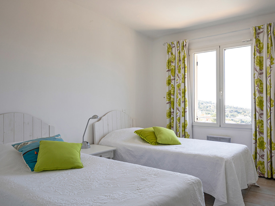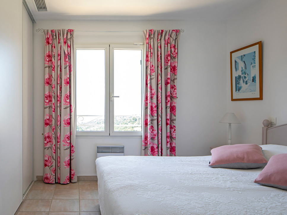 Slaapkamers 2 en 3 bevinden zich op de eerste verdieping. Slaapkamer 2, hier staat een tweepersoonsbed (160x200). Op slaapkamer 3 staan 2 éénpersoonsbedden (2x90x200). Beide slaapkamers bieden een fraai uitzicht op de Golf van Saint Tropez. De slaapkamers 2 en 3 delen een badkamer (bad, douche in bad en wastafel)