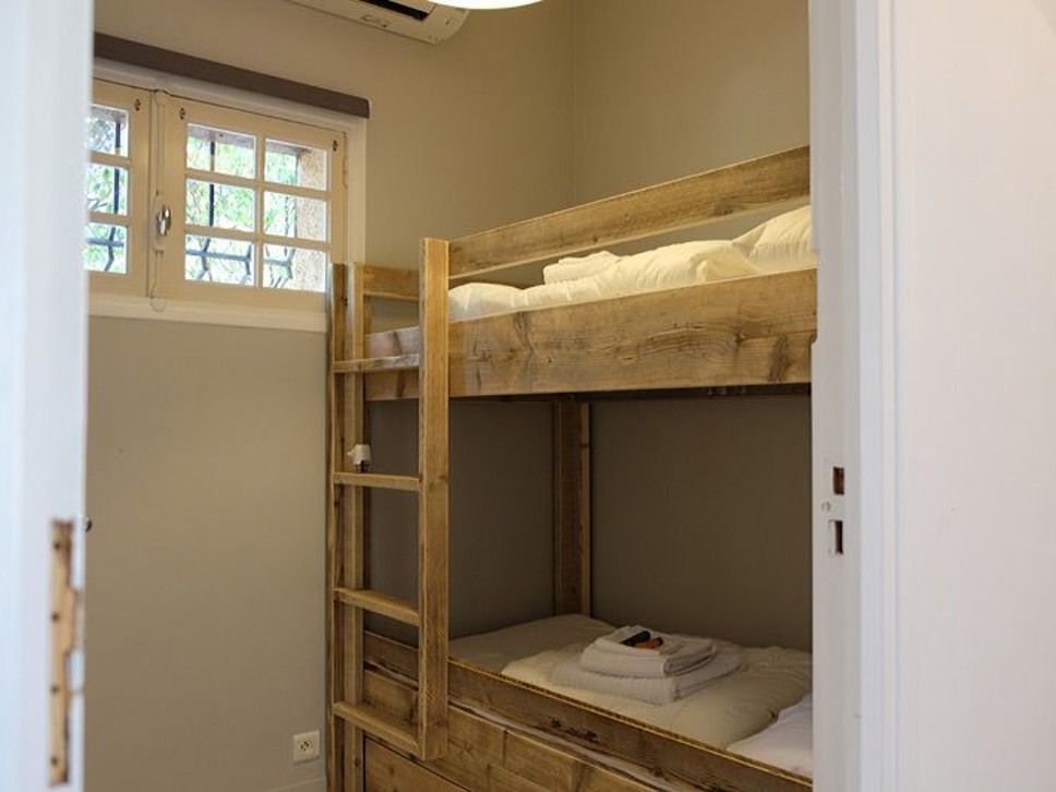 Het woning heeft 3 slaapkamers allen gelegen op de begane grond (niveau living). Er zijn 2 volwassenen slaapkamers en er is 1 kinderkamer. Op slaapkamer 1 staat een boxspring tweepersoonsbed (180x200). Beide slaapkamers hebben openslaande deuren direct naar tuin en het zwembad. Op slaapkamer 2 staan twee éénpersoons boxspring bedden (2x90x200). Deze zijn ook goed te gebruiken als een tweepersoonsbed. Op de kinder slaapkamer staat een stapel bed. Let op de lengte van het stapelbed is (80x180). Er is 1 badkamer op de begane grond. Er is een moderne wastafel en een regendouche in het ligbad. Ook is is er een separate W.C. op de begane grond.
