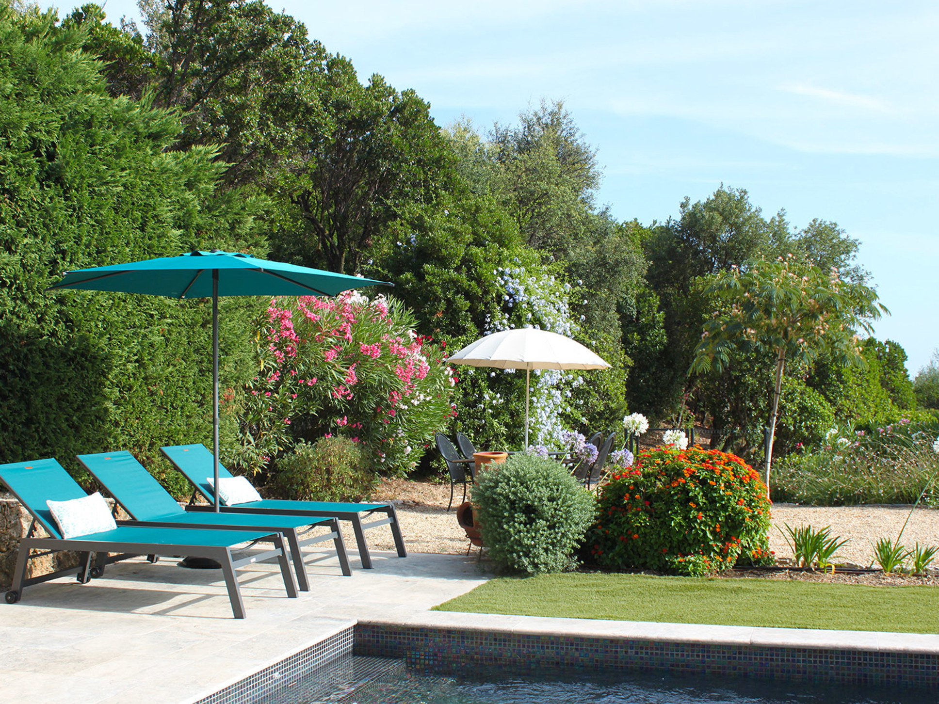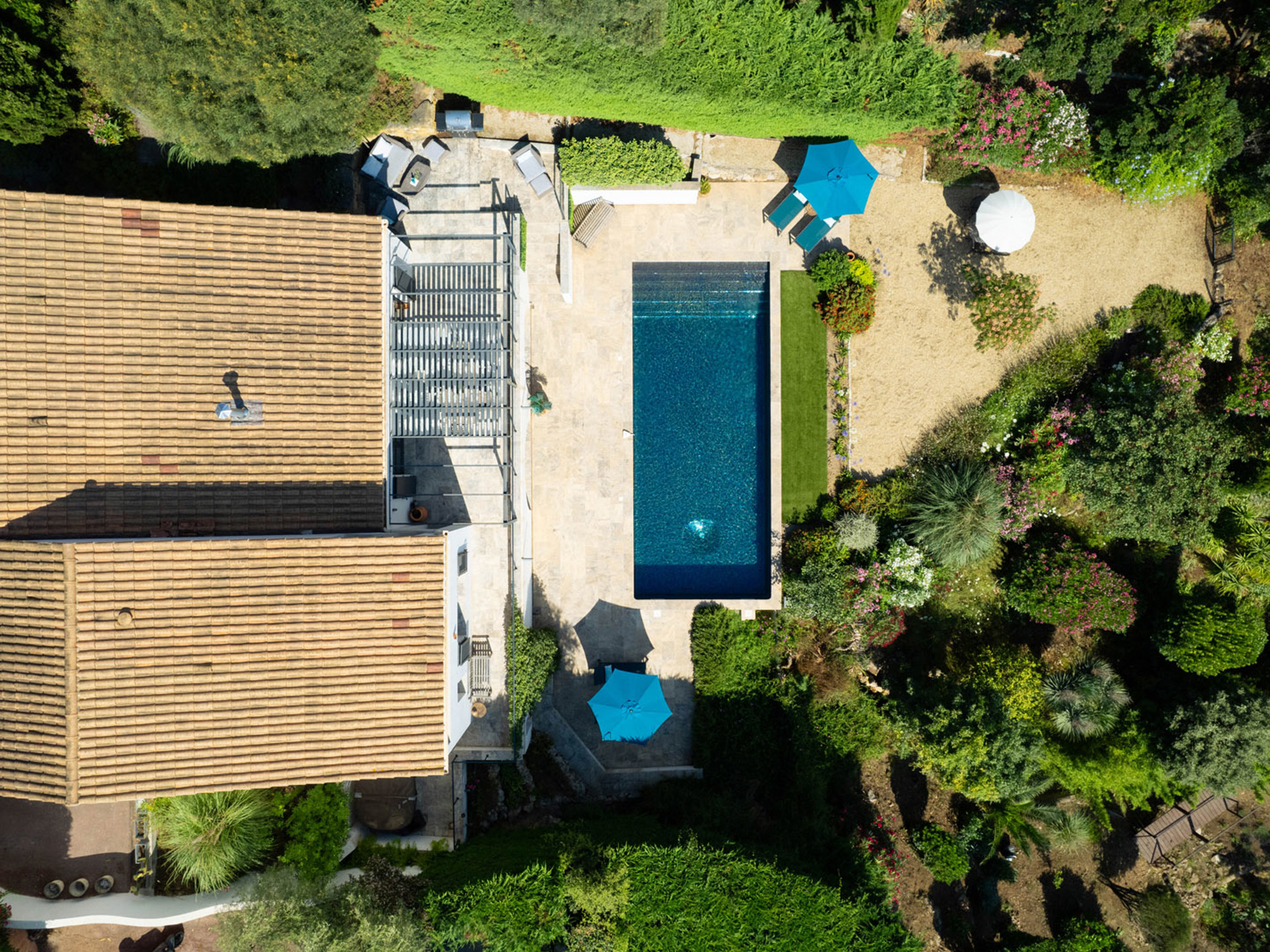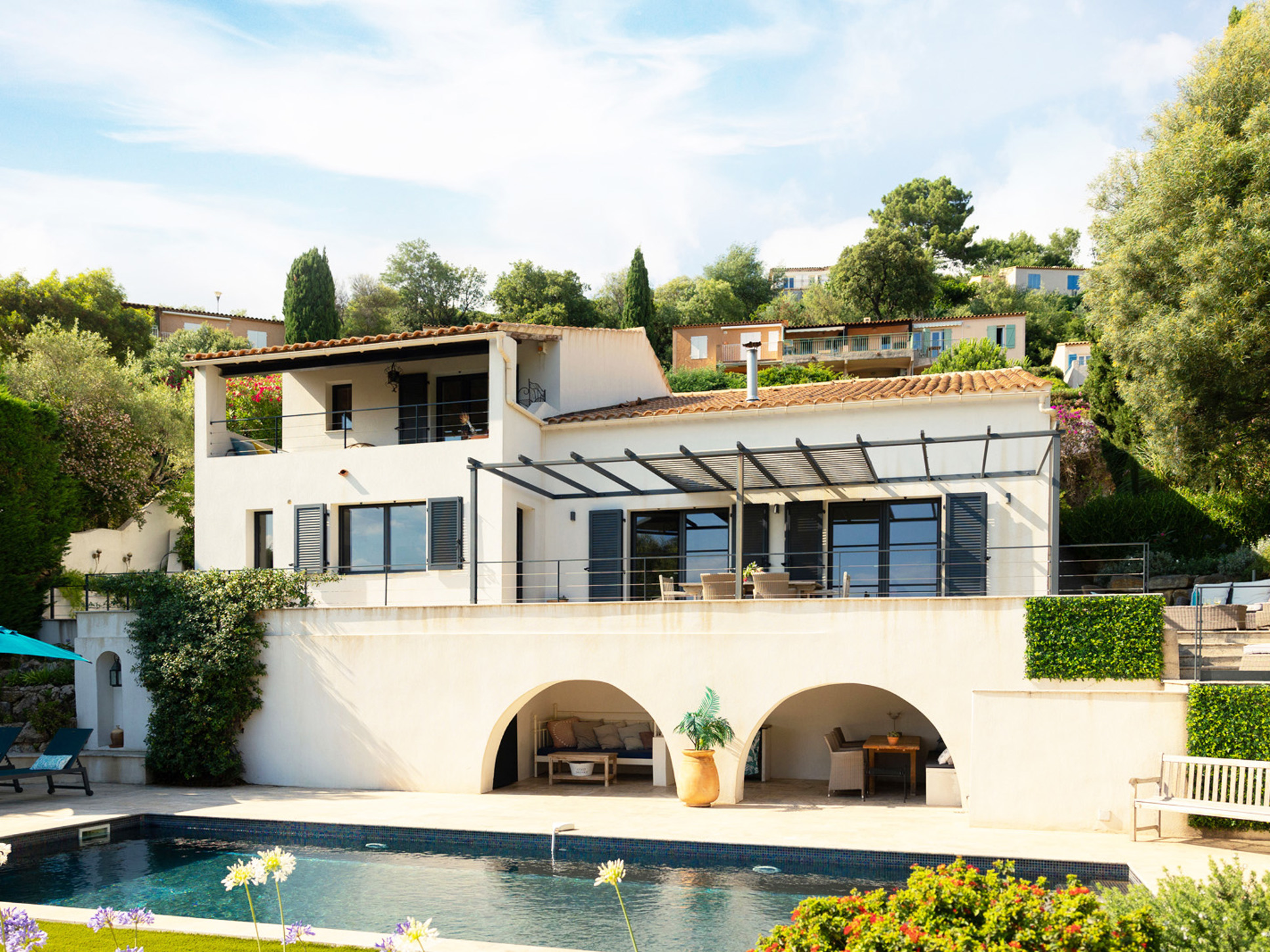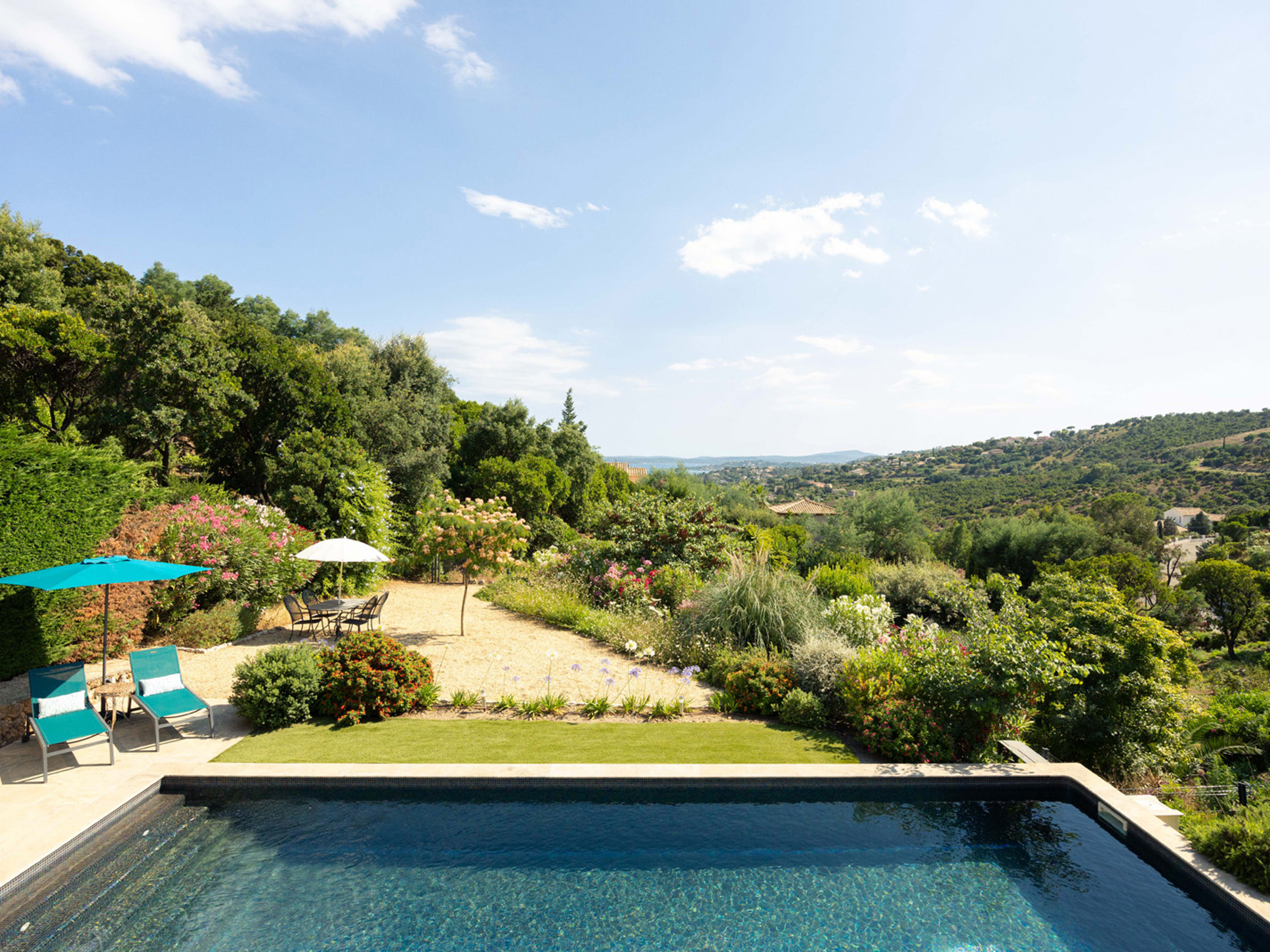 Vrijstaande villa met privézwembad te Les Issambres, Côte d'Azur. Royale tuin en fraai privézwembad, op besloten domein. Sfeervolle eclectische inrichting. Ook met zicht op de Golf van Saint Tropez. Het centrum van het dorp en strand op slechts 5 autominuten. Geschikt voor 6 personen + 1 baby.