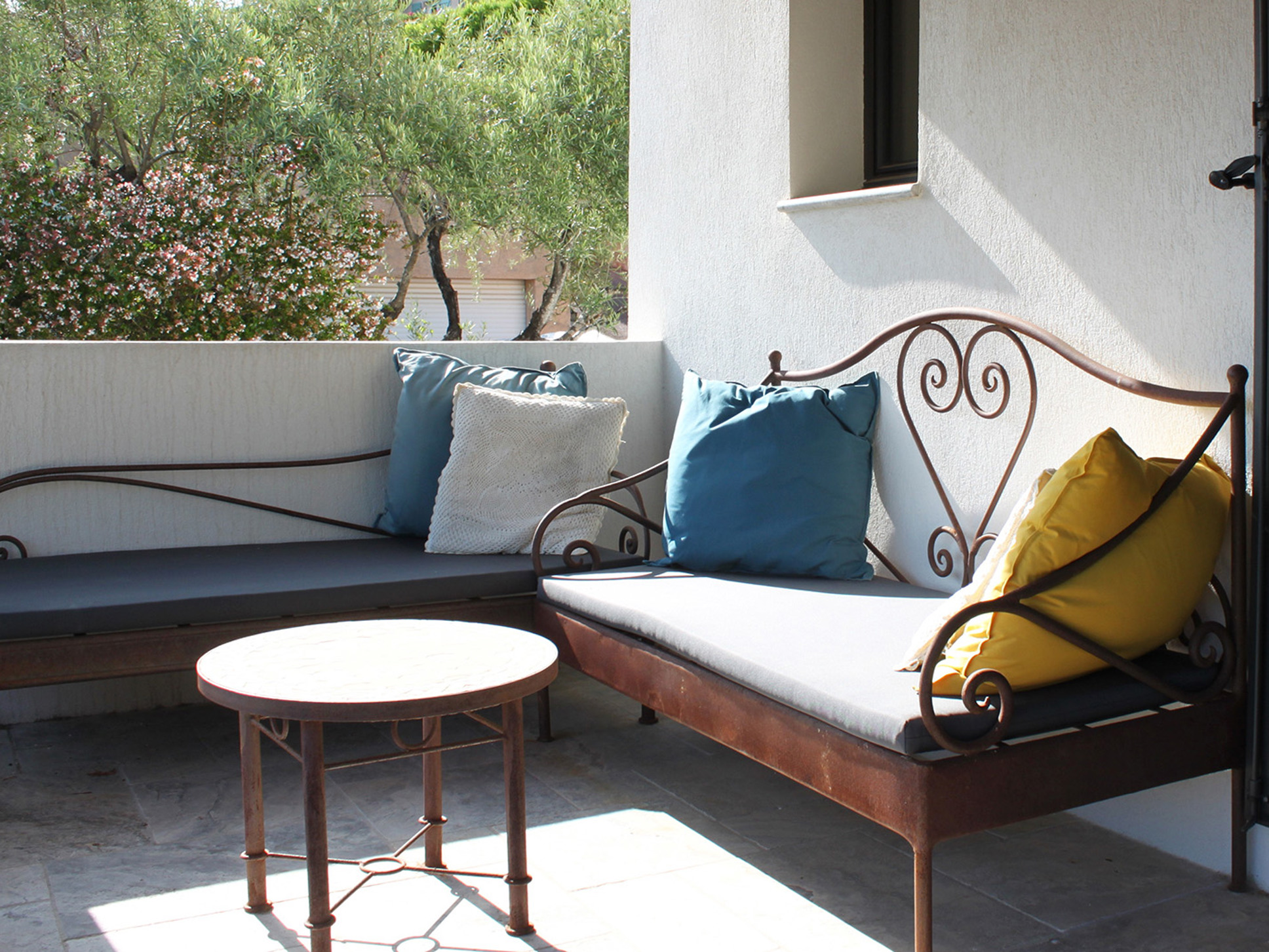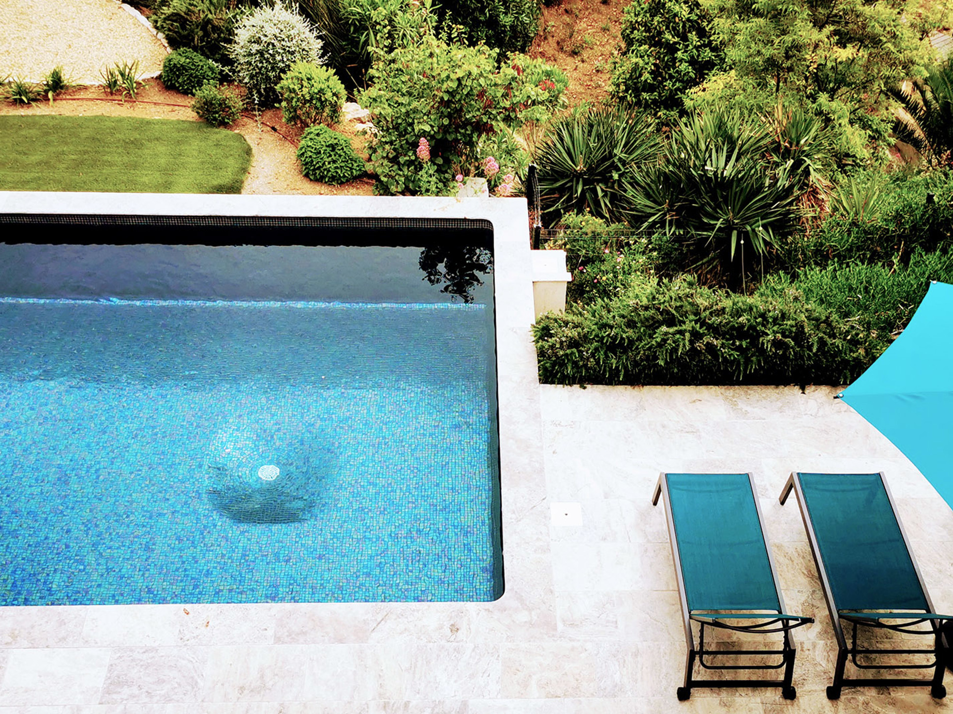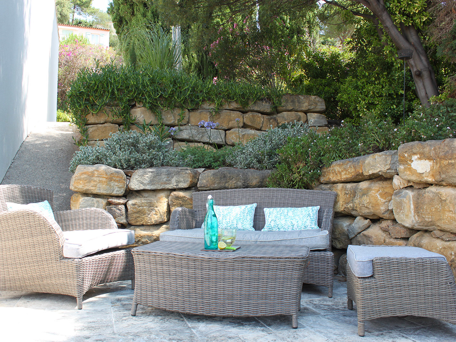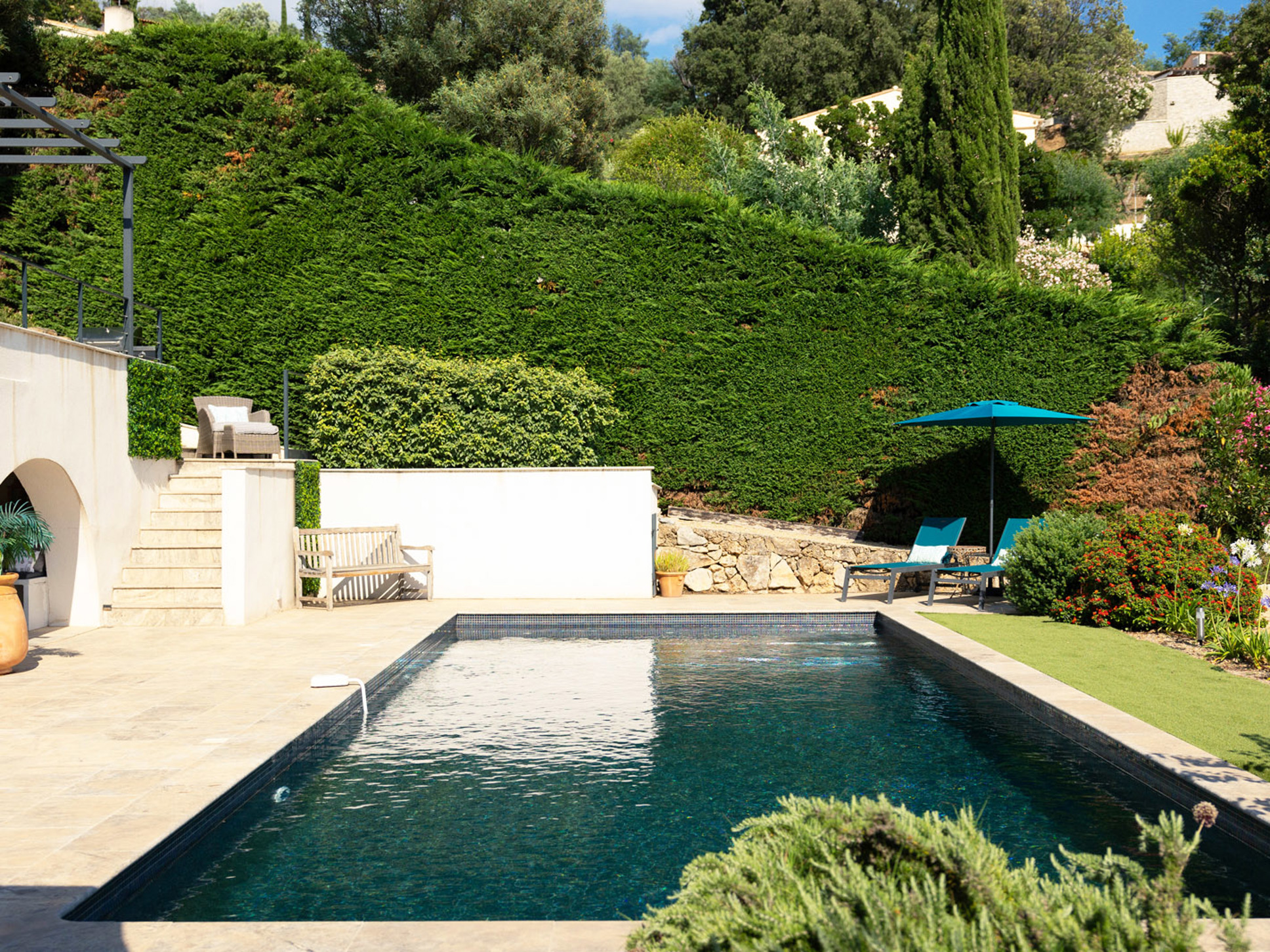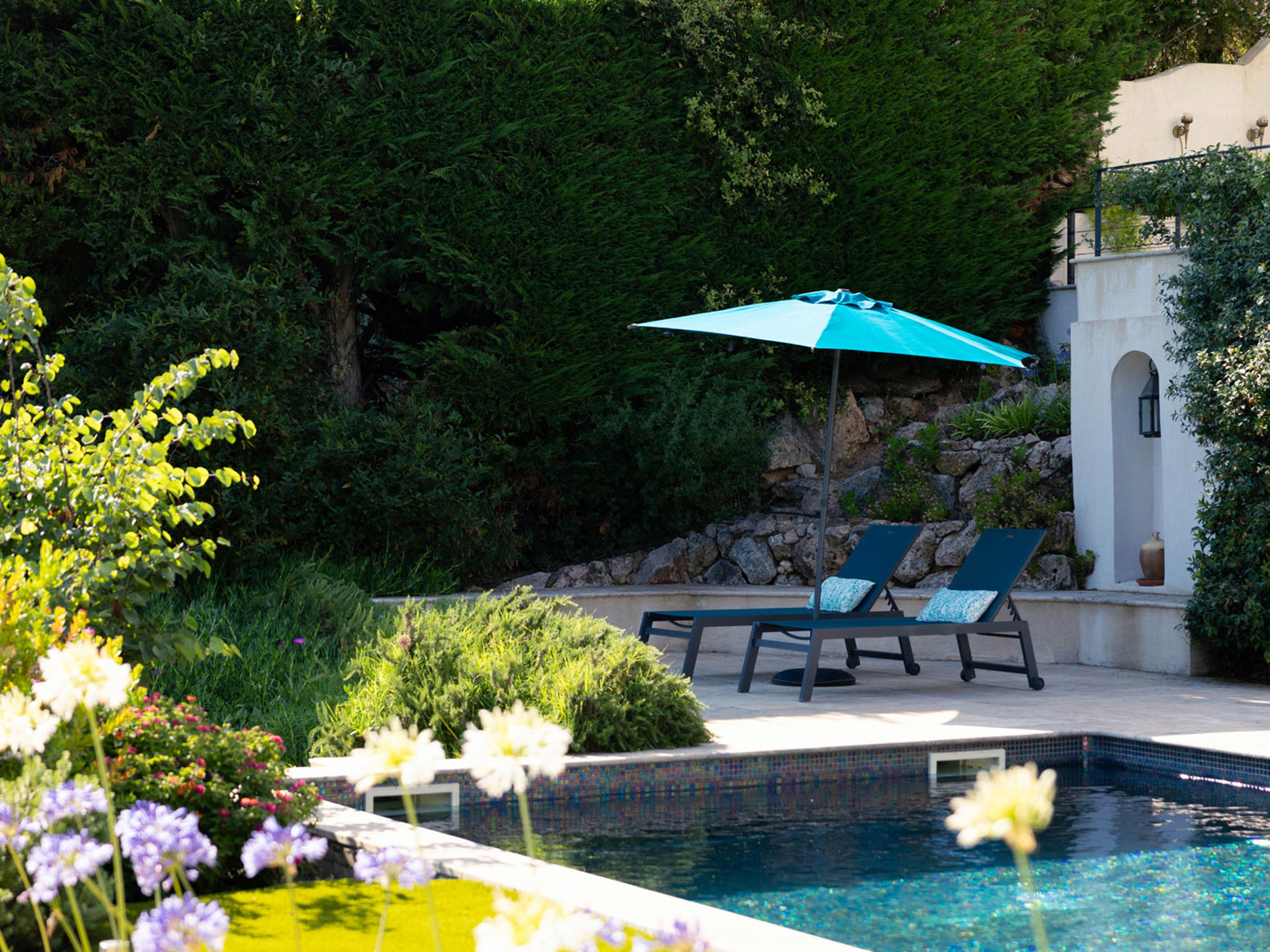 Vrijstaande villa met privézwembad te Les Issambres, Côte d'Azur. Royale tuin en fraai privézwembad, op besloten domein. Sfeervolle eclectische inrichting. Ook met zicht op de Golf van Saint Tropez. Het centrum van het dorp en strand op slechts 5 autominuten. Geschikt voor 6 personen + 1 baby.