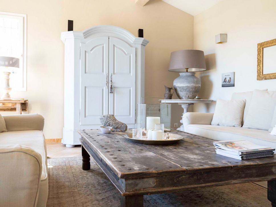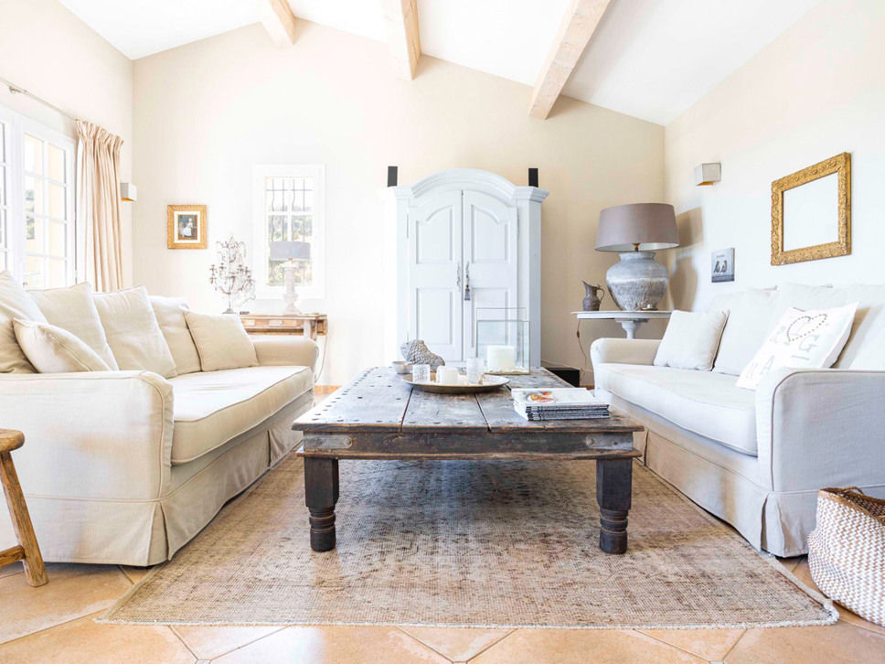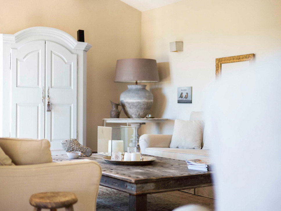 De villa is tegen een heuvel opgebouwd en kent daarom 3 niveaus: entree, wonen en slaapniveau. De gezellige living op het middelste niveau is in romantische stijl ingericht. Je kunt zien dat de eigenaren actief zijn in de decoratie- en meubelindustrie. Niet alleen zijn de meubels zeer comfortabel en zijn er leuke accessoires, de living is ook fraai geschilderd in eigentijdse kleuren. De open haard is natuurlijk erg leuk voor in de herfst of voor in het het voorjaar. TV en Wifi zijn aanwezig.